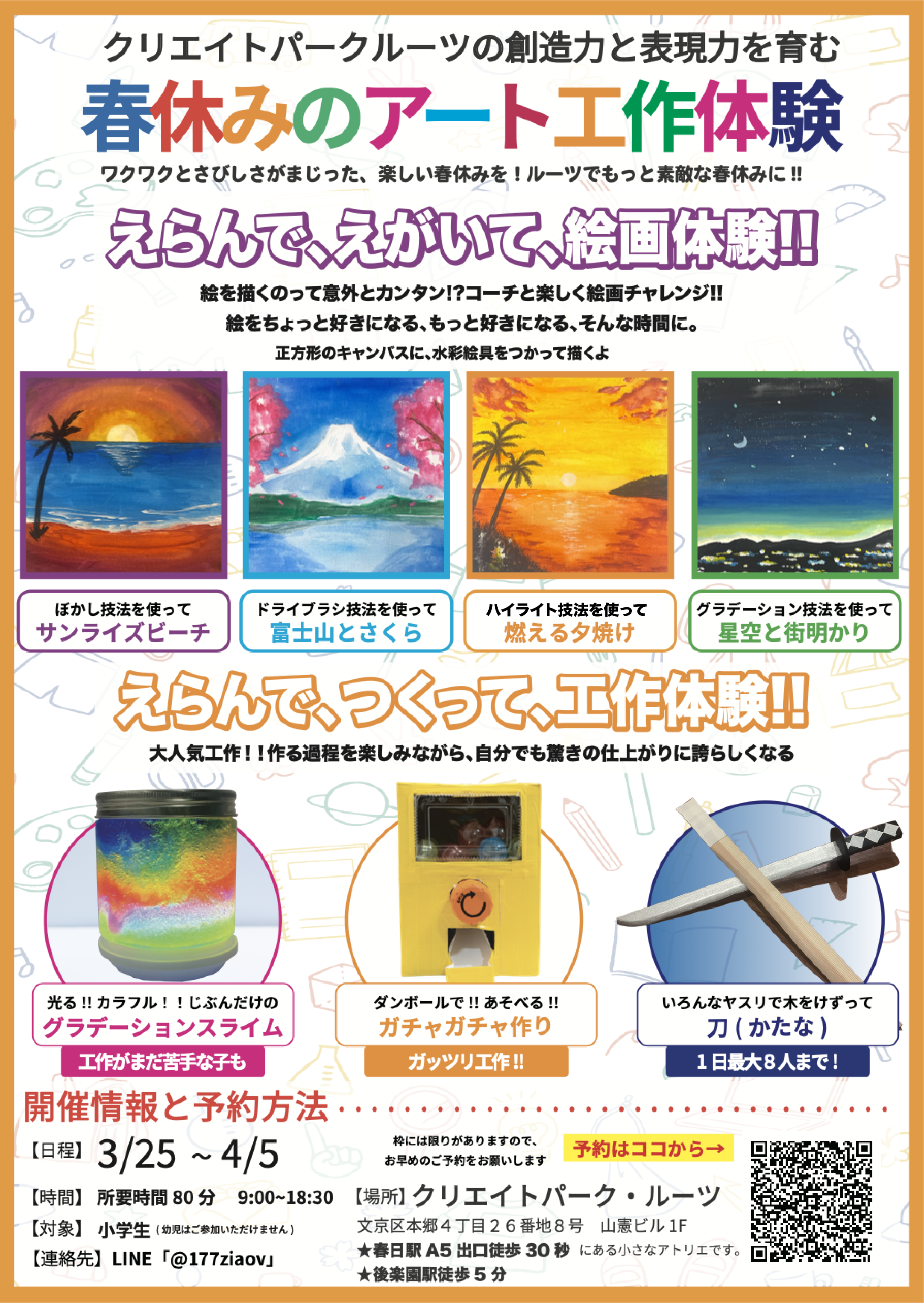 ・その他選べるアート工作体験はA枠,B枠同じ内容です。