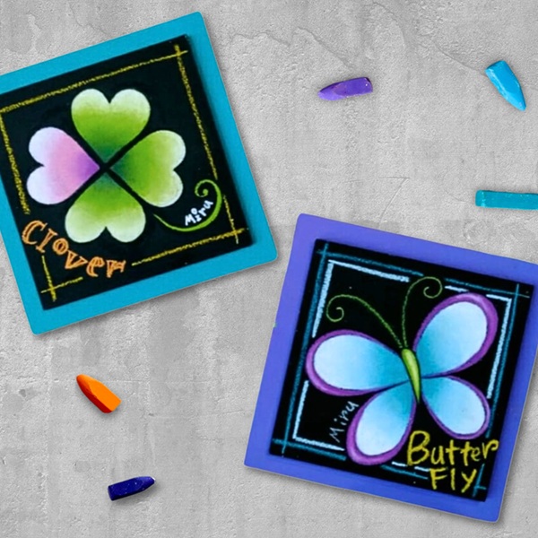遠くからでも目を惹くアートですが秘密は画材と技法にあります。学校の黒板用チョークとは違い、色を重ね繊細なグラデーションを表現することができるオイルパステル。指先で色を混ぜて触覚でも楽しめちゃいます。