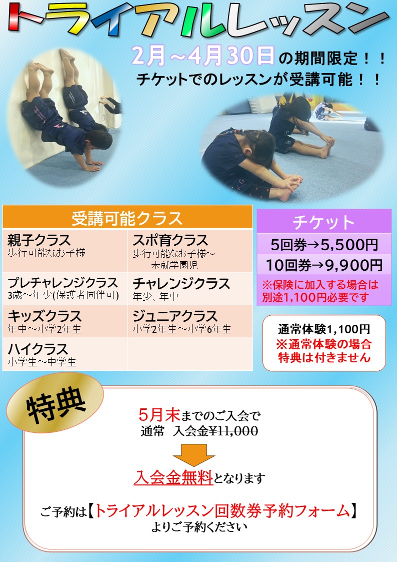 ※申込フォームの時間表記は、予約システム上1枠1時間となっていますが、実際は1枠50分間となります(親子クラス、プレチャレンジクラスは40分)