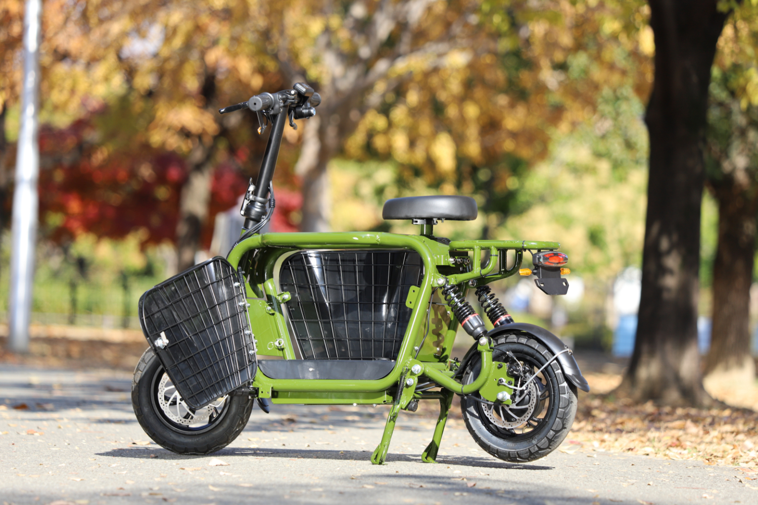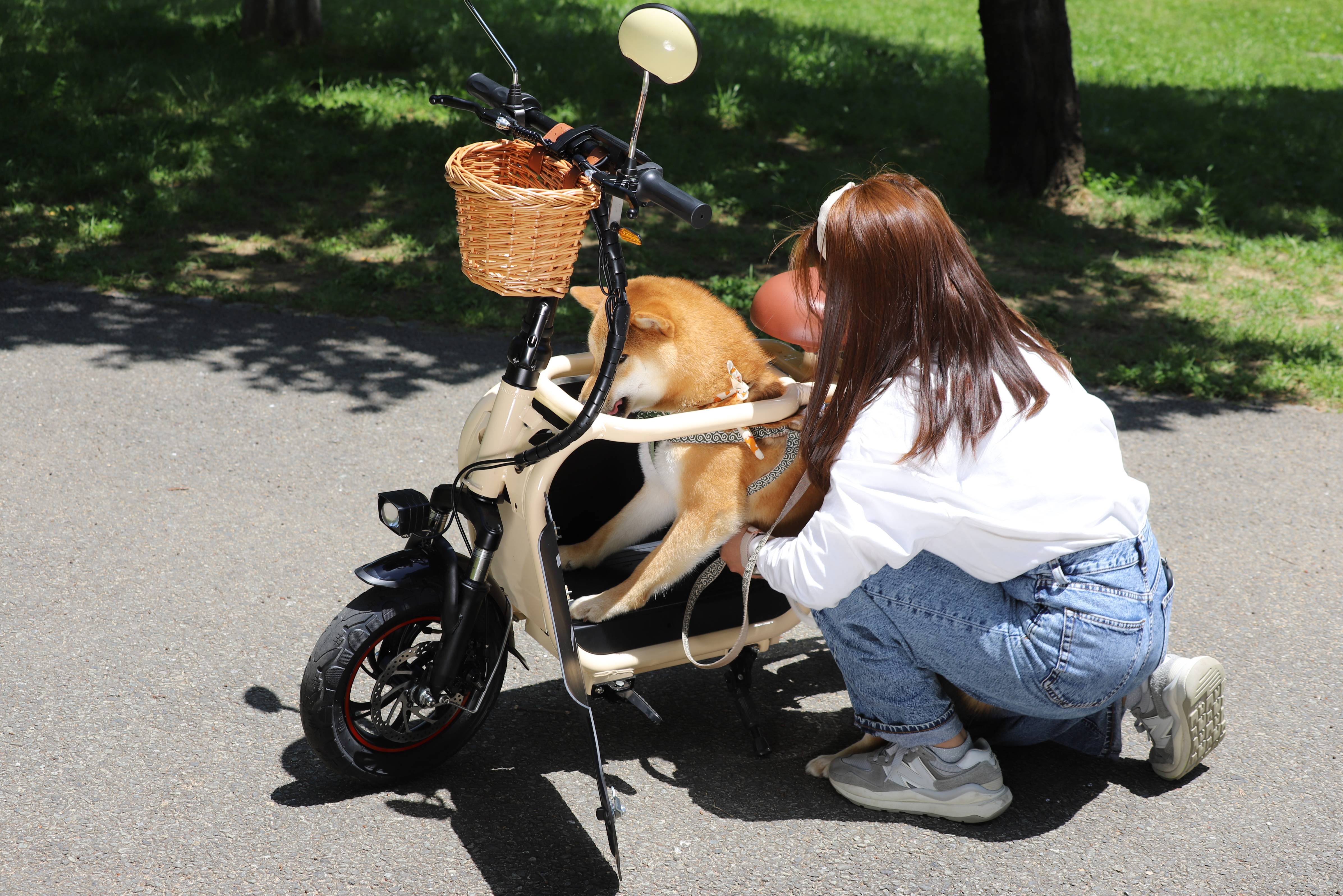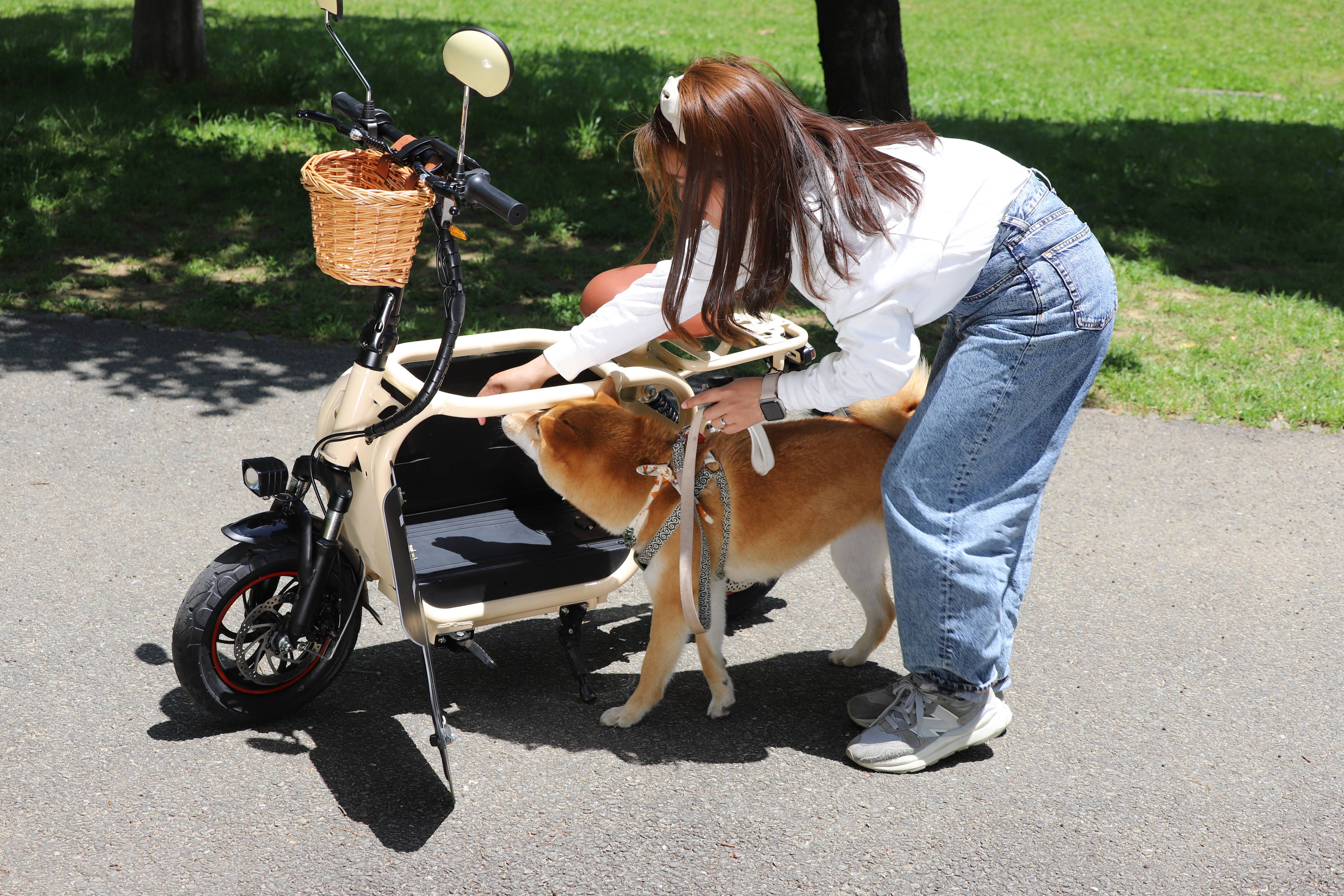 愛犬と一緒にお出かけができる、新しいスタイルの電動バイクです。愛犬専用のスペースを確保した設計で、最大15kgまでのワンちゃんと快適に移動が可能。運転には原付一種免許があればOKで、特別な資格は不要です。