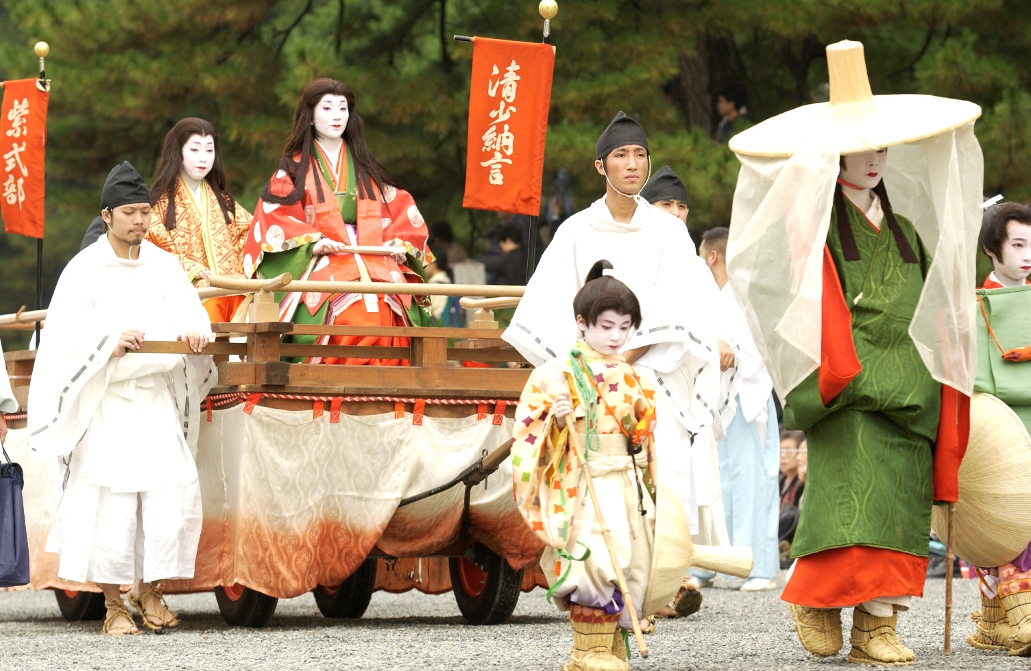 明治維新から平安京が造営された延暦時代まで時代を千年さかのぼり、西郷隆盛、織田信長、紫式部など歴史の教科書に登場する人物に扮して、各時代の装束をまとった約2000人の時代風俗行列がみどころです。