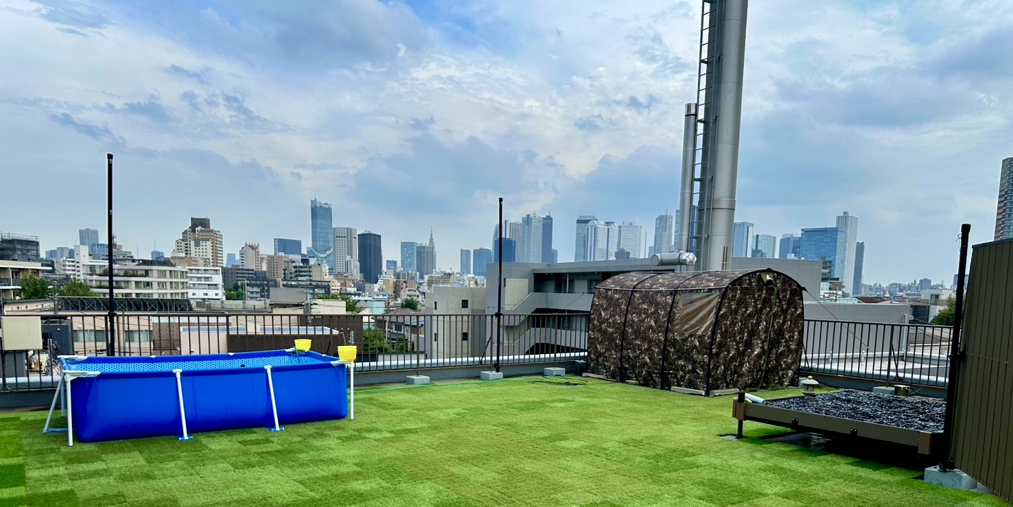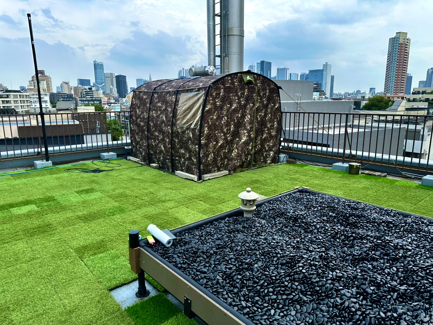 都会の景色を一望しながら、開放感あふれるテントサウナをお楽しみいただけます。