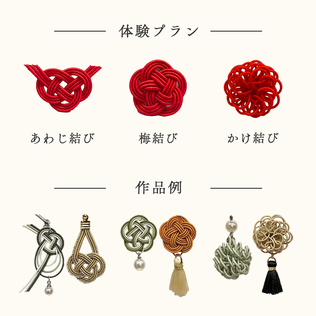 開催時間によって結び方・制作個数が異なるため、作りたいデザインの回をご予約ください。