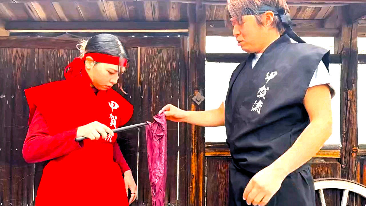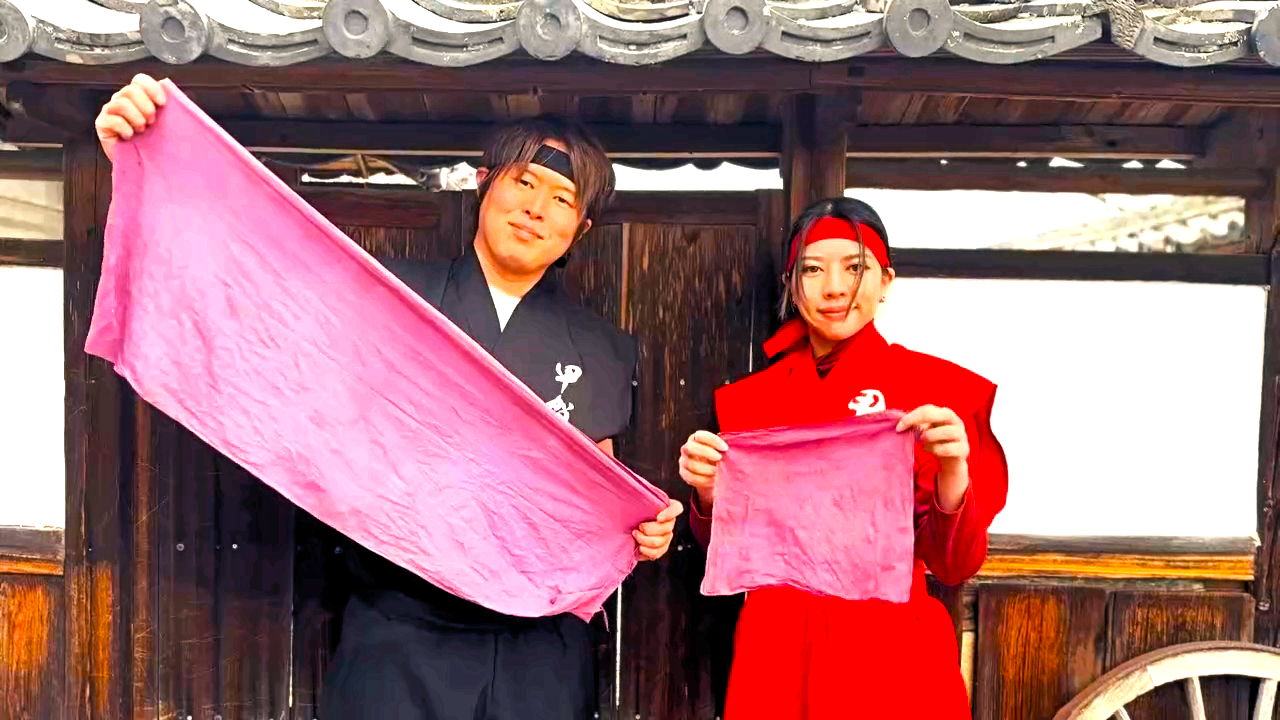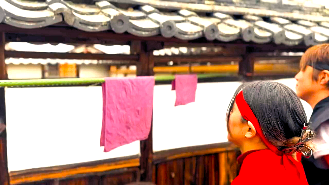忍者が任務にいく際に携帯したとされる「忍び六具」のひとつ「三尺手拭い」を作るワークショップ。殺菌・防虫効果のある蘇芳にて染め、できたら忍者的てぬぐいの使い方を伝授します。