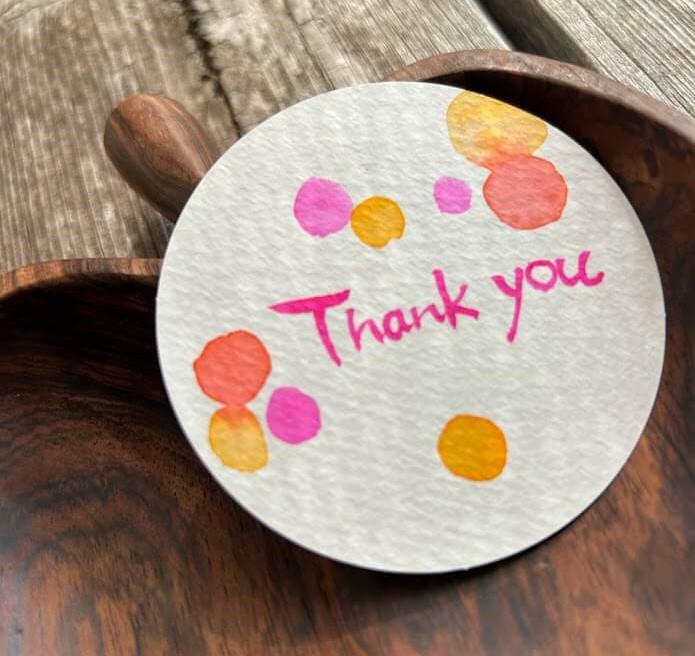 12月は、手のひらサイズのありがとうカードをつくります。カラー筆ペンと水筆ペンで描く、小さなカード。 ちょっとしたおすそわけや、ひとことメッセージにぴったりです。