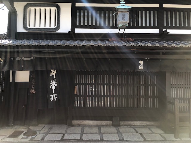 応仁の乱の西軍の陣地跡が名前の由来である「西陣」の地で、江戸時代より続く老舗織屋「帯屋捨松」です。