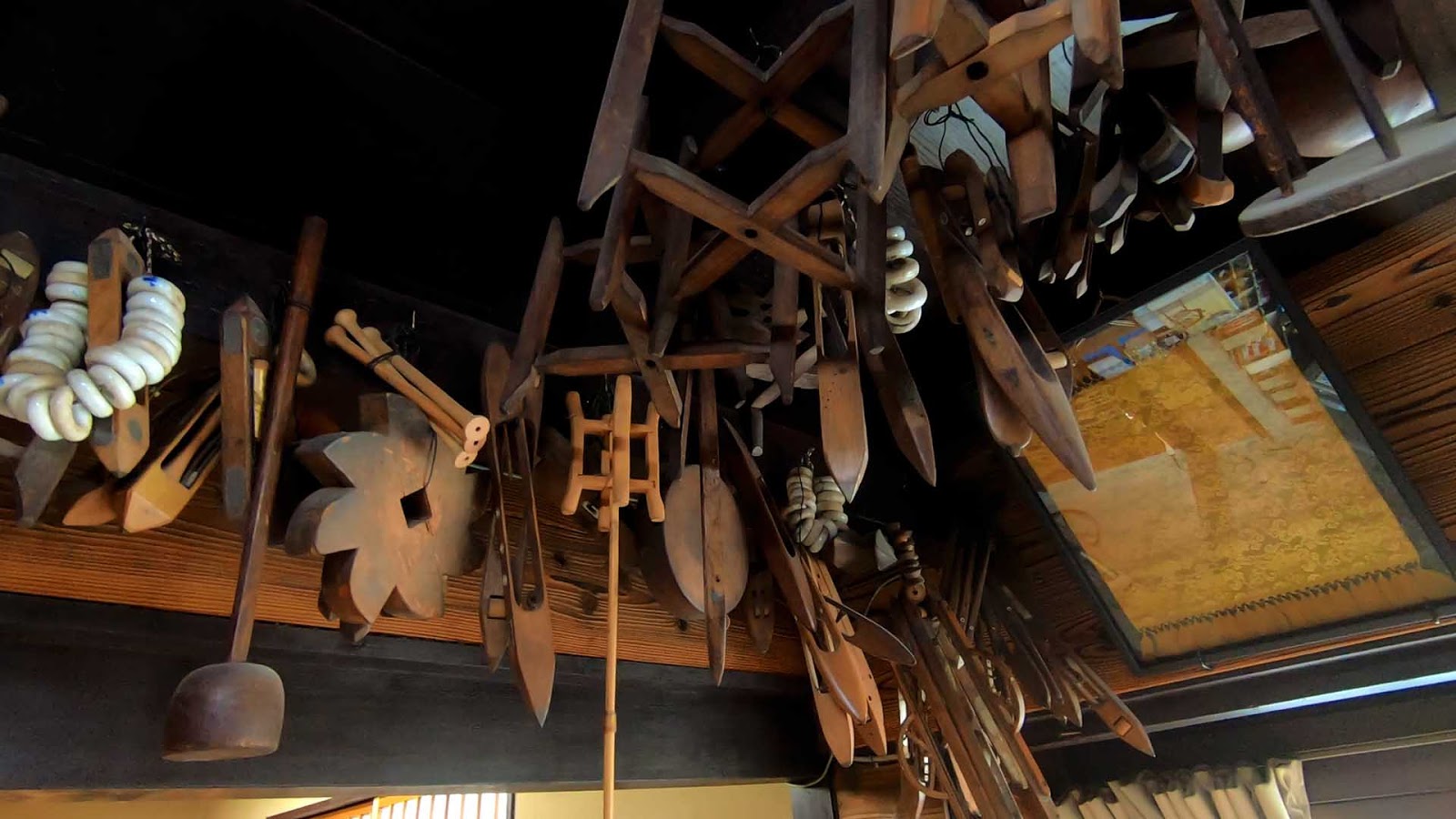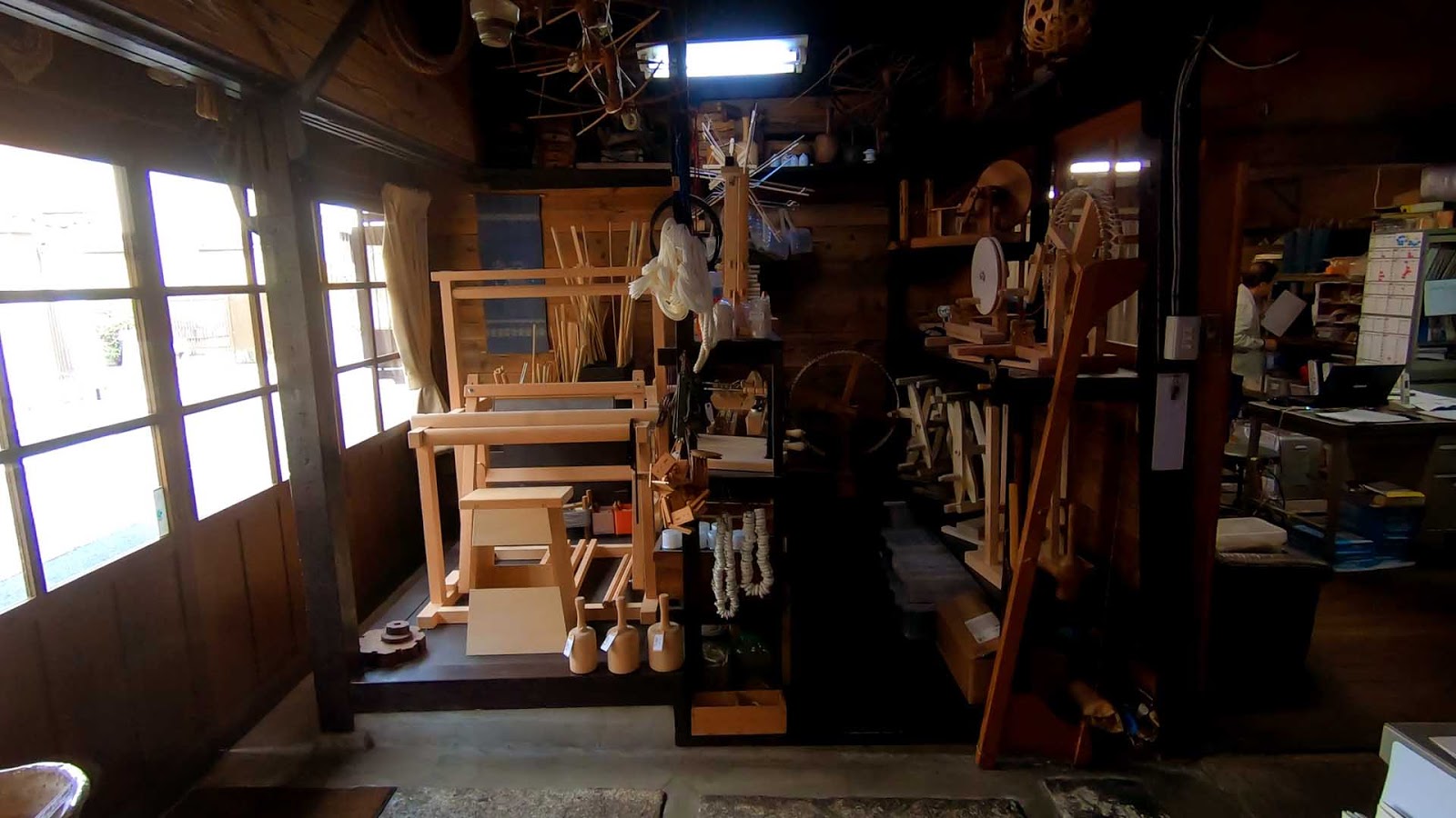 西陣の地で古くから機織り道具を販売、専門的な機織り道具が所狭しと並びます。