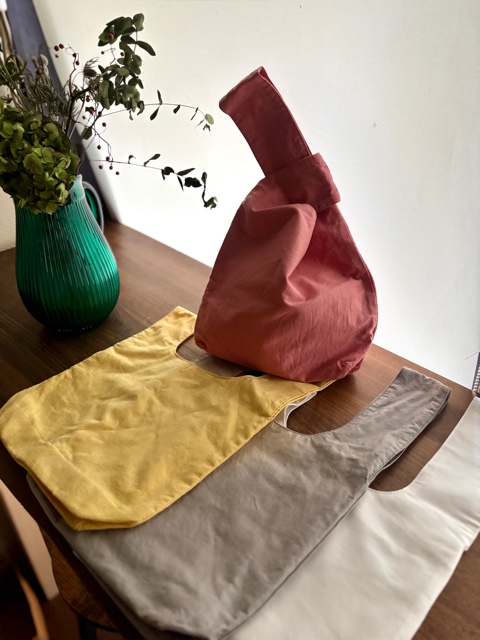 ④草木染め・糸紡ぎ体験 - 完成したオリジナルエコバッグ・紡ぎ糸をお持ち帰りいただきます(お一人様一つずつ)。