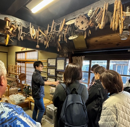 ③手織道具の並ぶ工房を見学