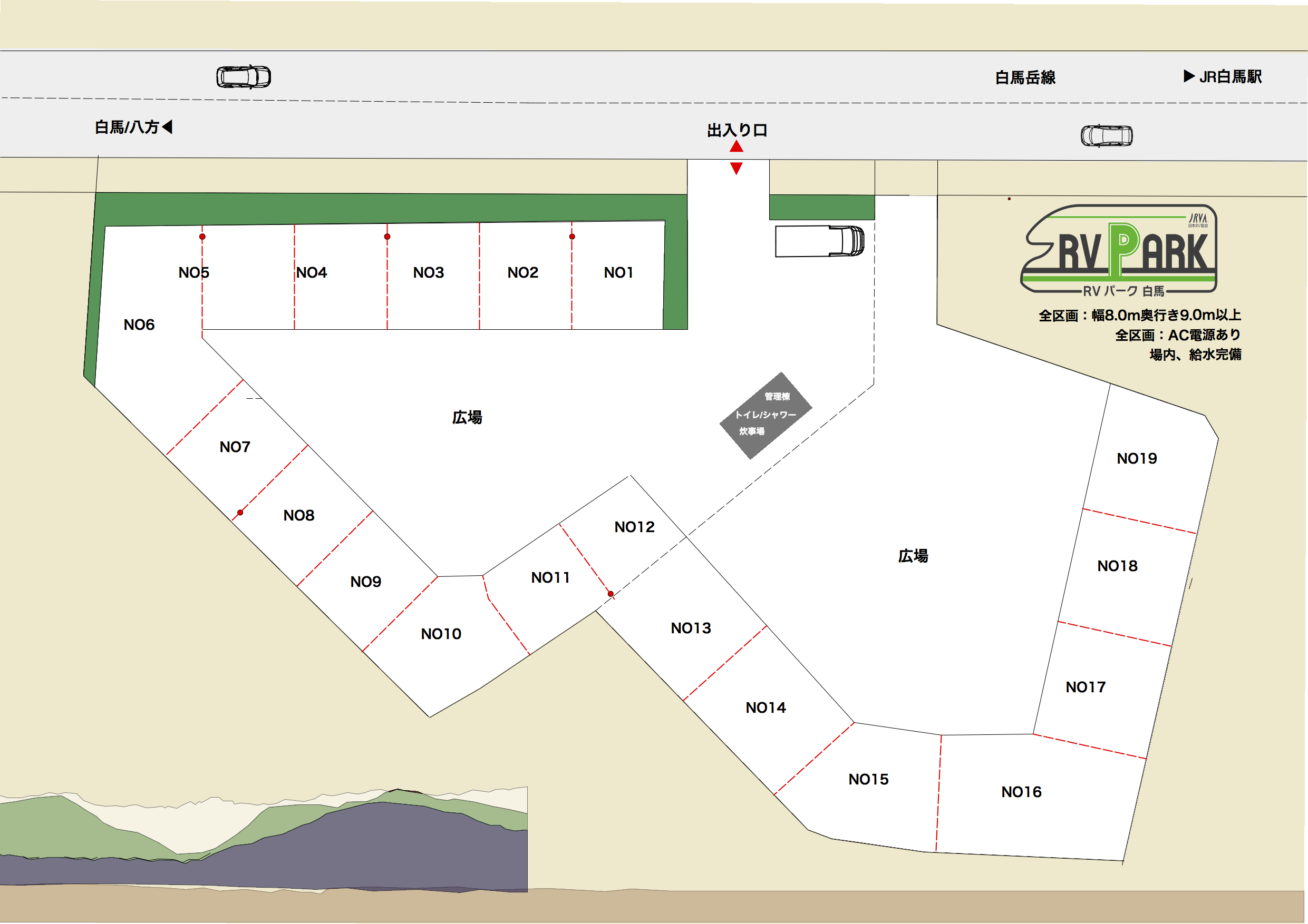・AC電源(20A)完備(№1~№12サイト)
