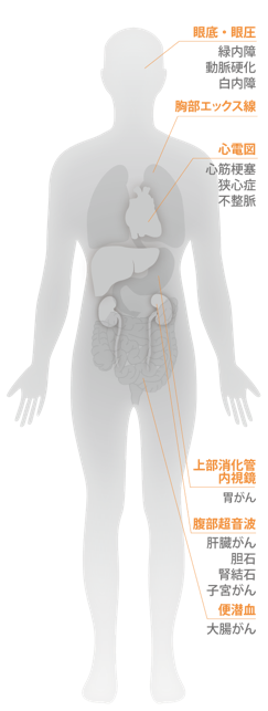 充実した検査項目で、生活習慣病と代表的ながんを調べます。「自分は健康だ」「体調に異常を感じない」そんな方も、年に1度の人間ドックを受けて生活習慣病の“芽”を摘み取りましょう!
