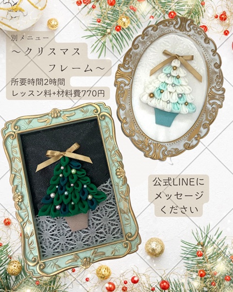 同日別メニューで、写真立てサイズの『クリスマスフレーム』も作れます。こちらのメニューでご予約の上、公式LINEにメッセージをください。