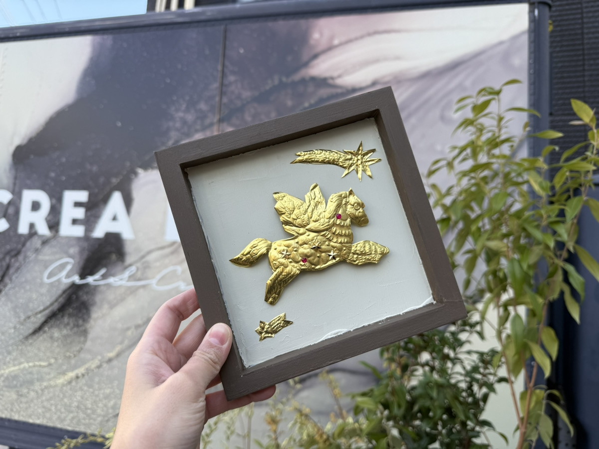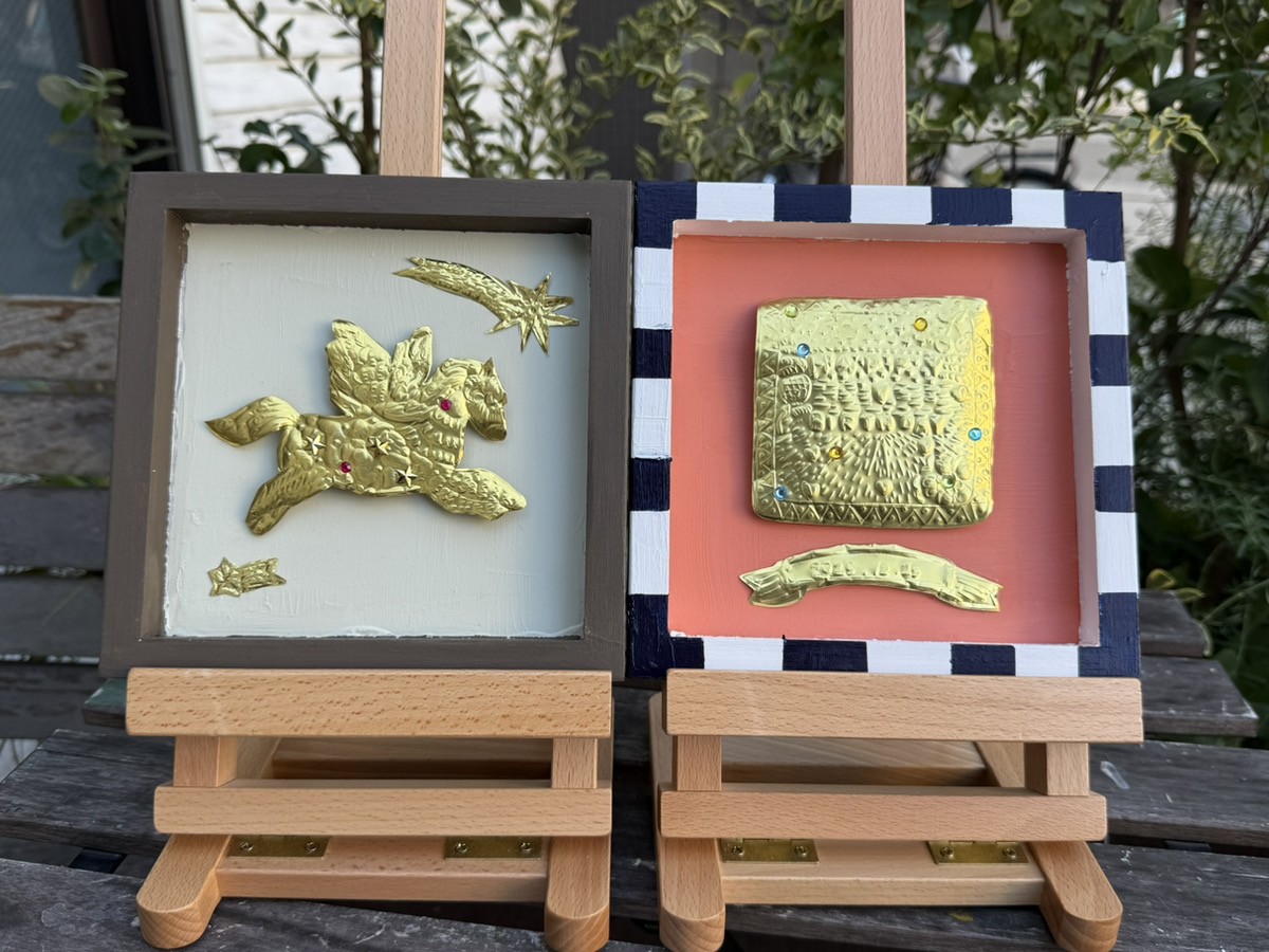 薄い金属シートに好きなデザインを凹凸で模様付けをします。