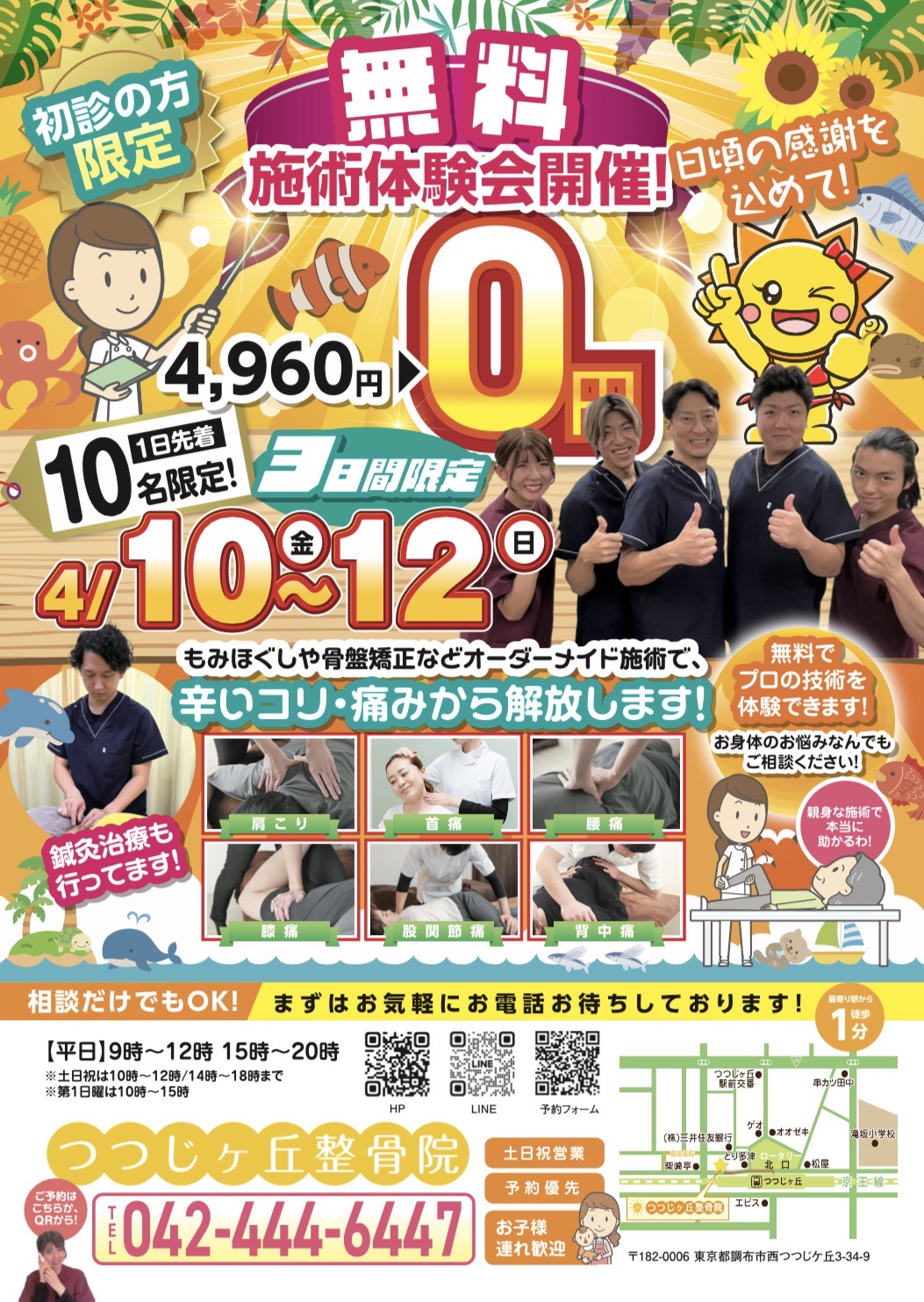 2026年1月 ・23日(金)・24日(土)・25日(日) ・26日(月)・27日(火)・28日(水) ・29日(木)・30日(金)・31日(土) 9日間限定! ワンコイン施術体験会を実施いたします! 1日先着5名となりますのでお早めにご予約ください! 当院の治療技術をこの機会にぜひお試しください!