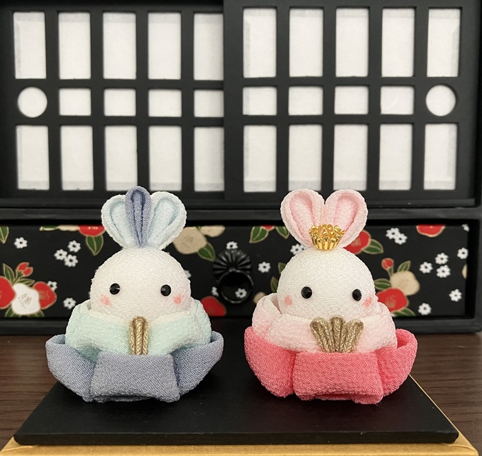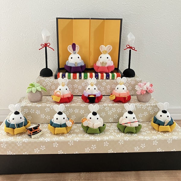 手のひらサイズのかわいいおひなさまを作ります。もちろんお着物の色を自由に選べるので、お好きな色で作ってくださいね。大きめのサイズの布を使って作るので、実は難易度は低めです。お花の中心部分にお顔をのせる形になるので、多少いびつでも気になりません。お子様と一緒に親子で作るのにもおすすめです。