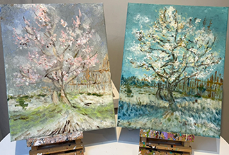 淡い色遣いや繊細なタッチが印象的な、美しい早春の絵画、ゴッホの花咲く桃の木 ナイフや筆を使い、春の訪れを感じる1枚を描いてみませんか?