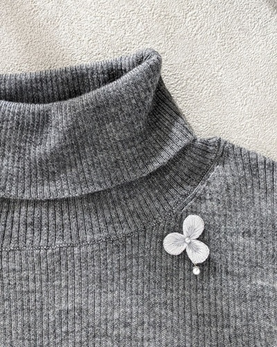 オフフープ立体刺繍で冬色ブローチを作りましょう