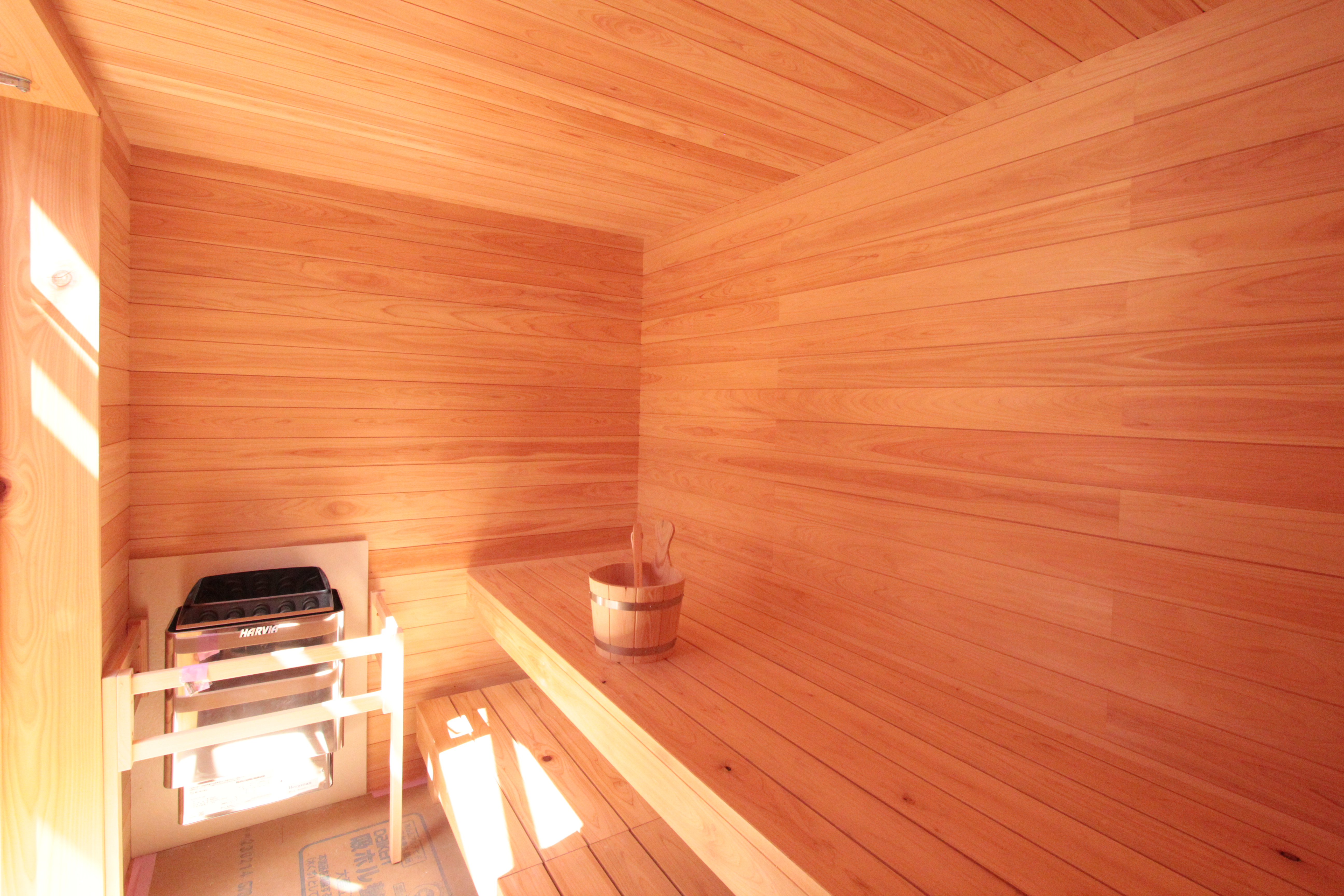ロウリュもできる天然檜の香る本格サウナ(オプション)で日頃の疲れを癒やしてくれます。