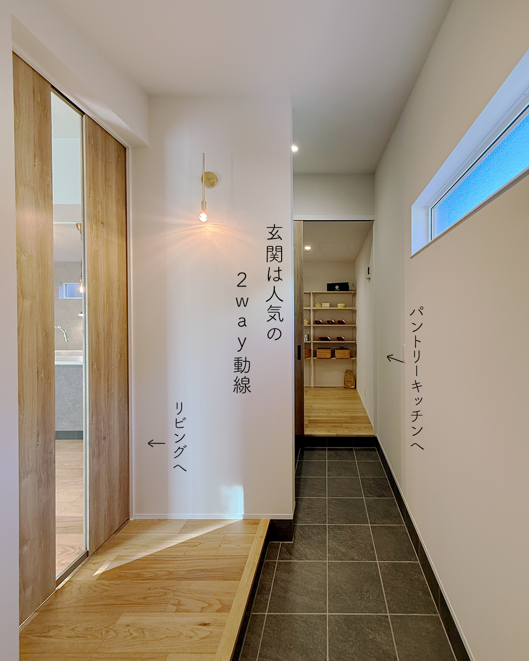 ・玄関土間から直接パントリーへ行ける人気の帰宅動線
