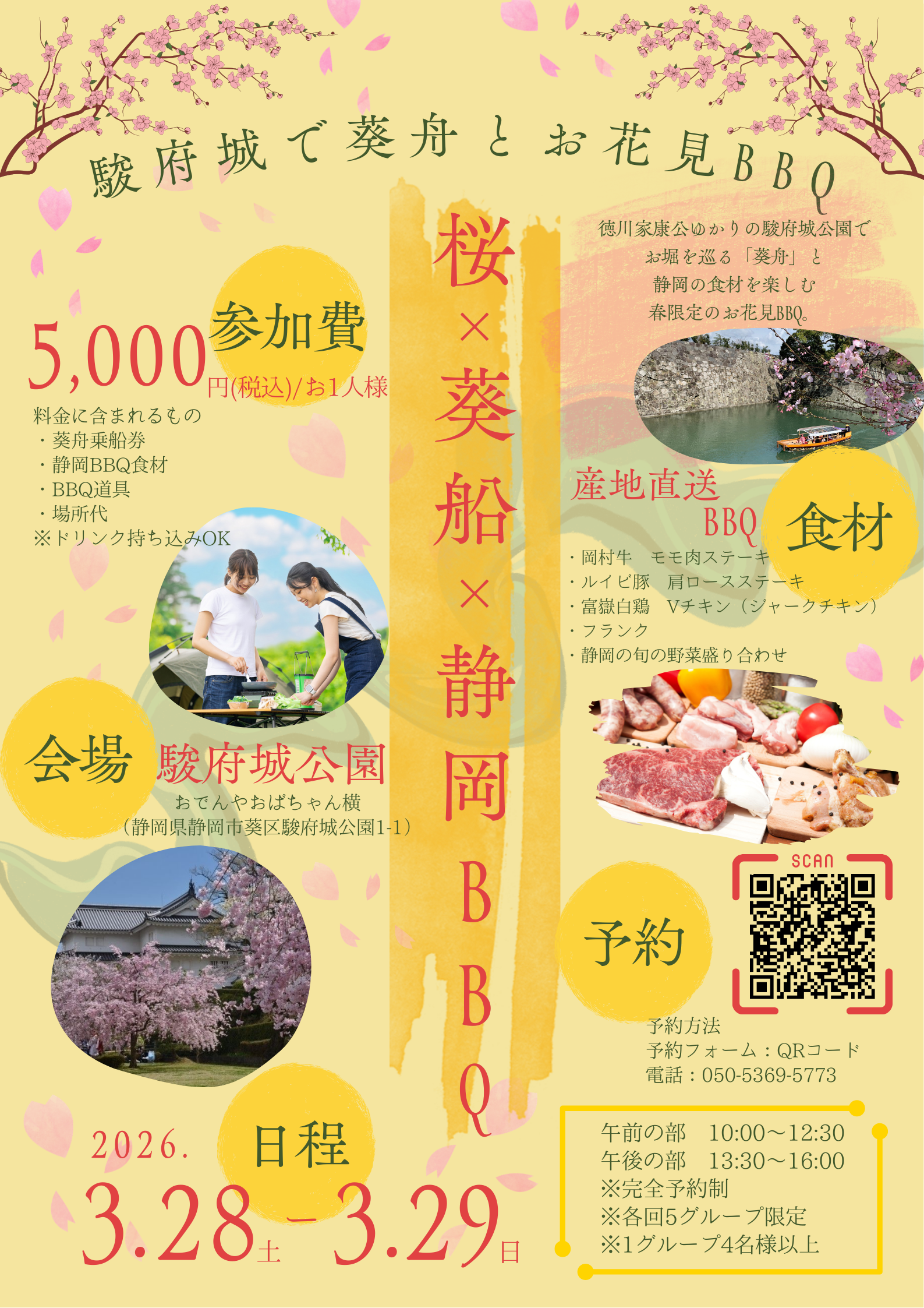お堀を巡る「葵舟」と静岡の食材を楽しむ春限定のお花見BBQ。