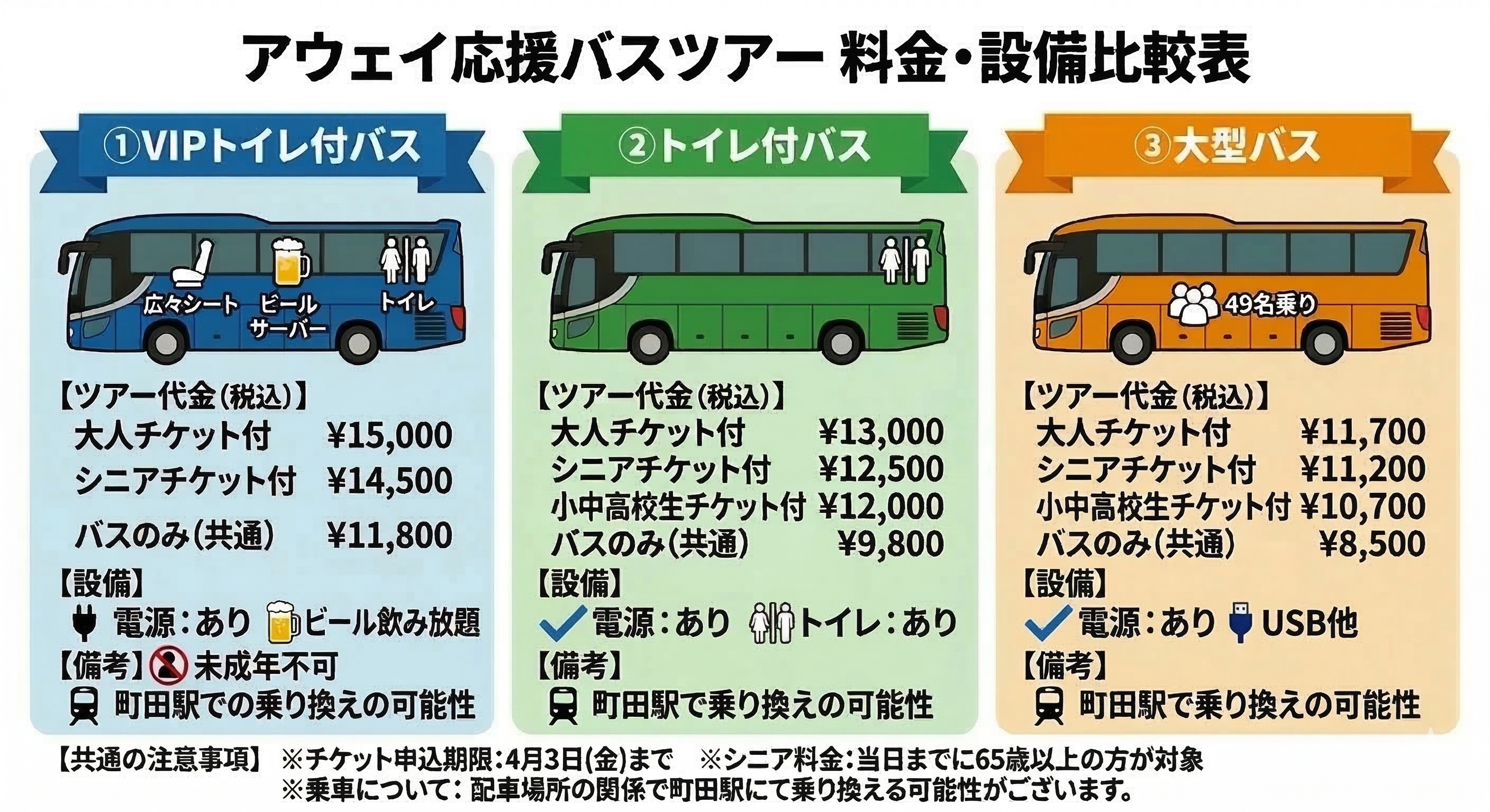 復路: 試合終了40分後出発 ➡ 各地(21:30〜22:30頃着)