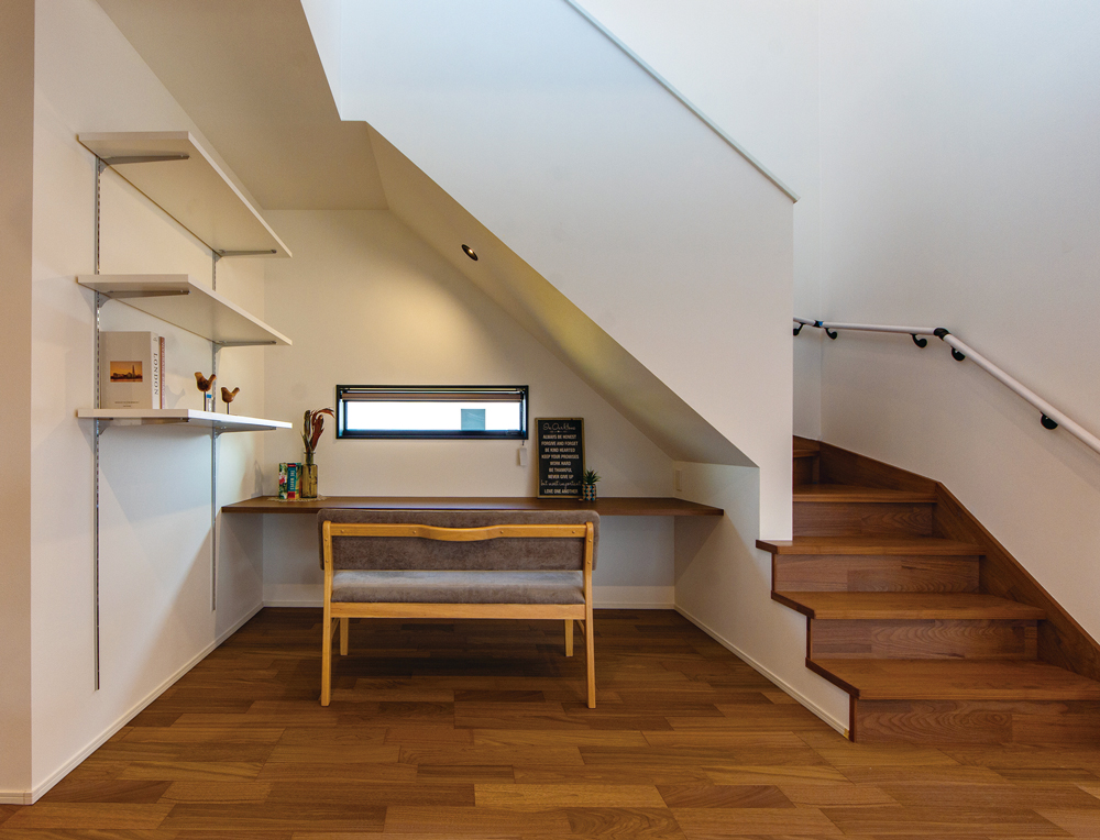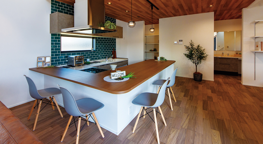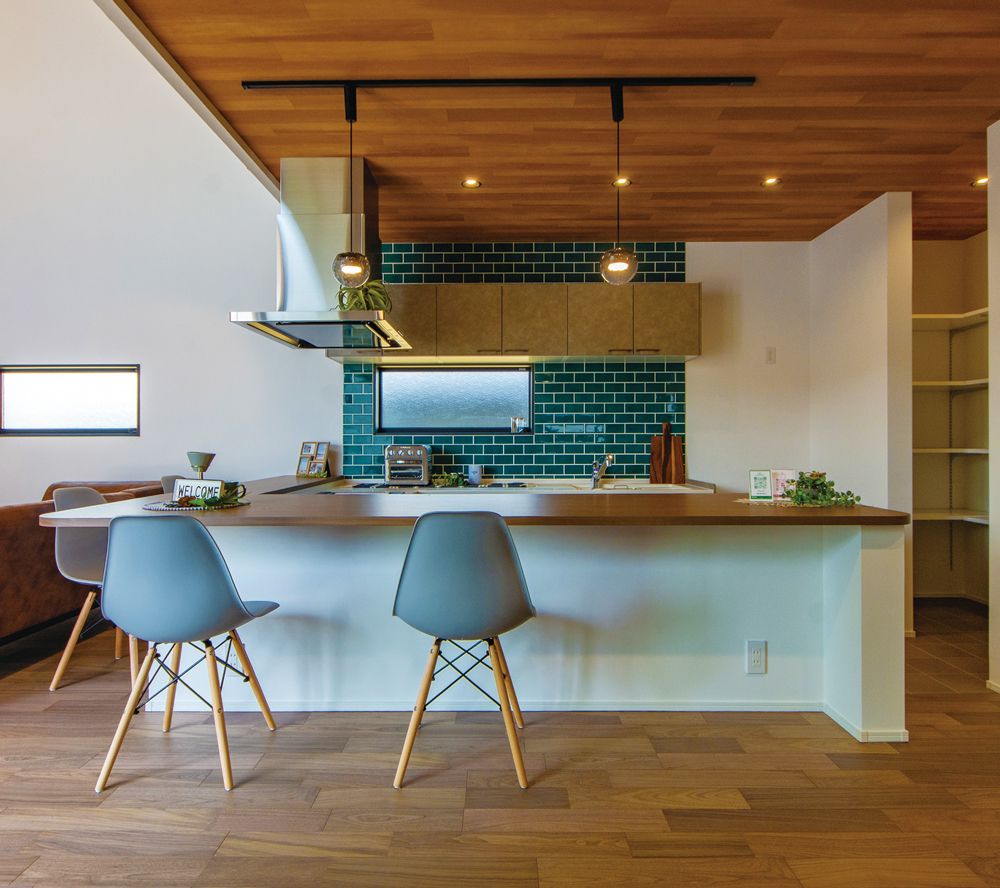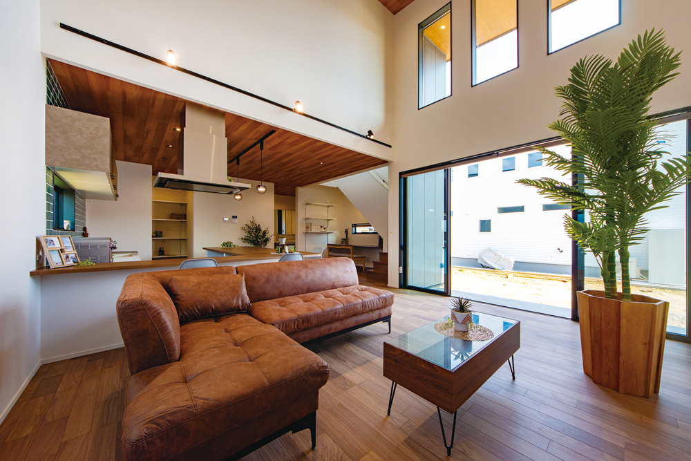 シンプルモダンな外観。今回はいつもと違ったシンプルカフェスタイルの2階建て高鍋の家です。L型キッチンカウンターや大きな吹き抜け空間でおしゃれカフェのような雰囲気。とても居心地の良いお家です。