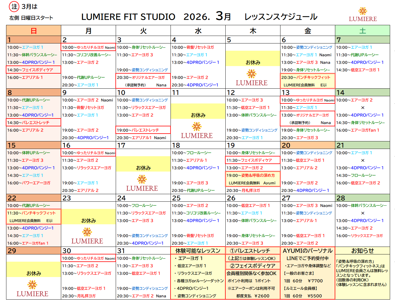 https://www.lumiere.studio/post/レッスン種類と予約注意点