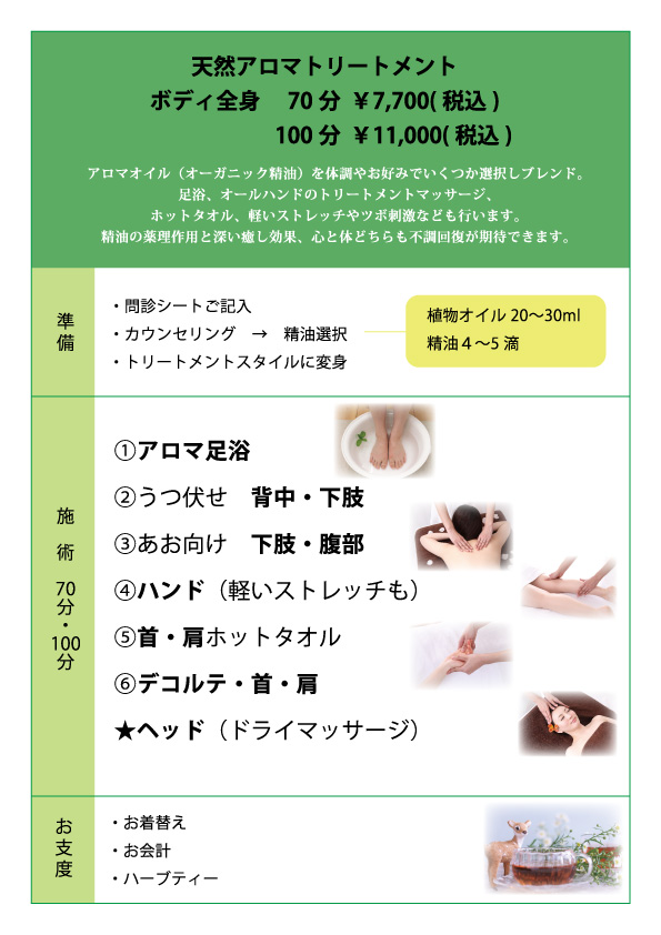 天然アロマトリートメント【ボディ全身70分】 ¥7,700(税込)