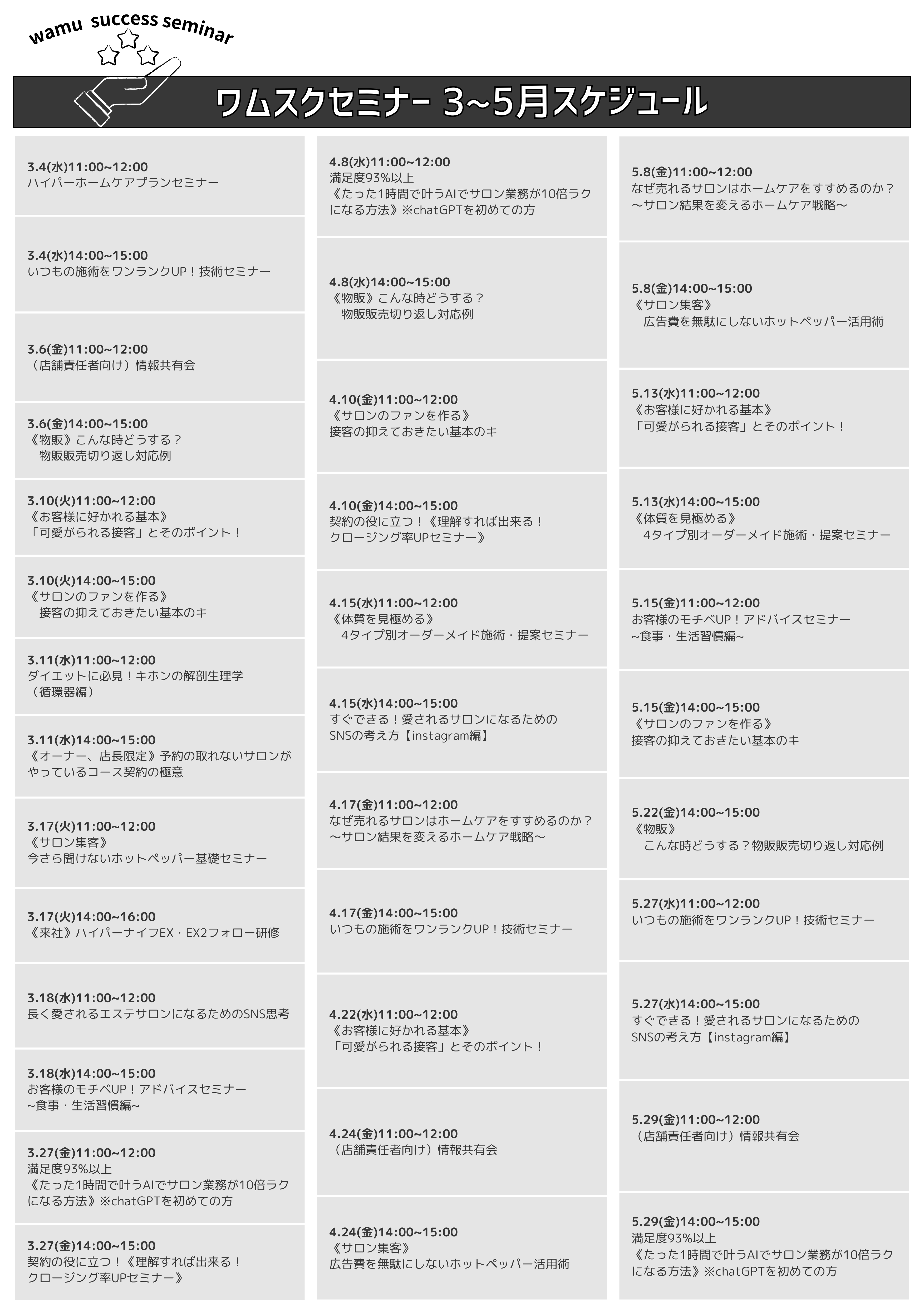 こちらはワムスクセミナーの会員のお客様限定のご予約フォームです。