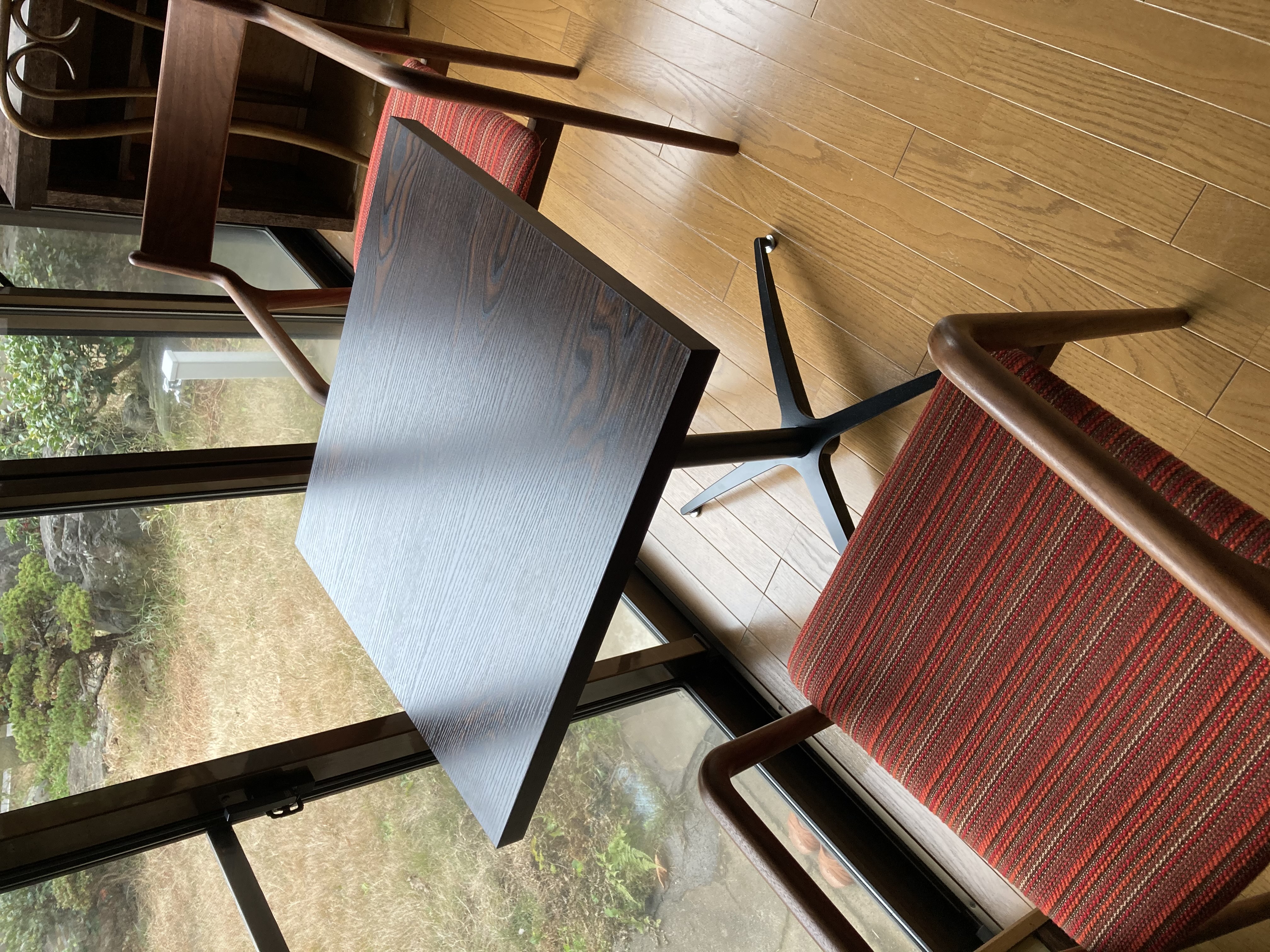 座り心地の良い、赤い椅子のお席です。(定員2名)