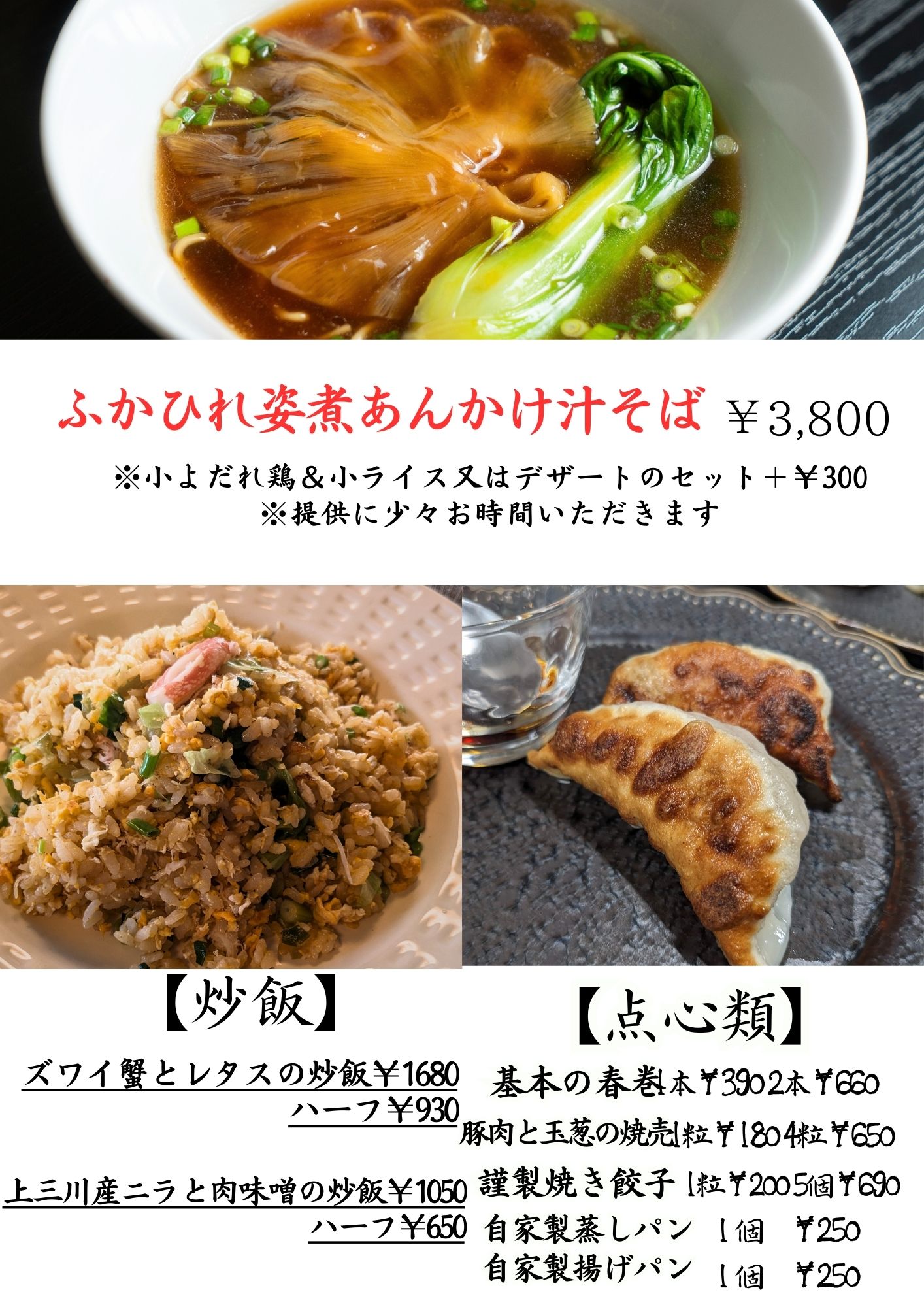 ・一緒にご注文のお料理は、前日予約のコースでも当日ご来店されてからの単品メニューでも、ご希望に合わせてお選びいただいて構いません。予約時に備考欄へお書きください。