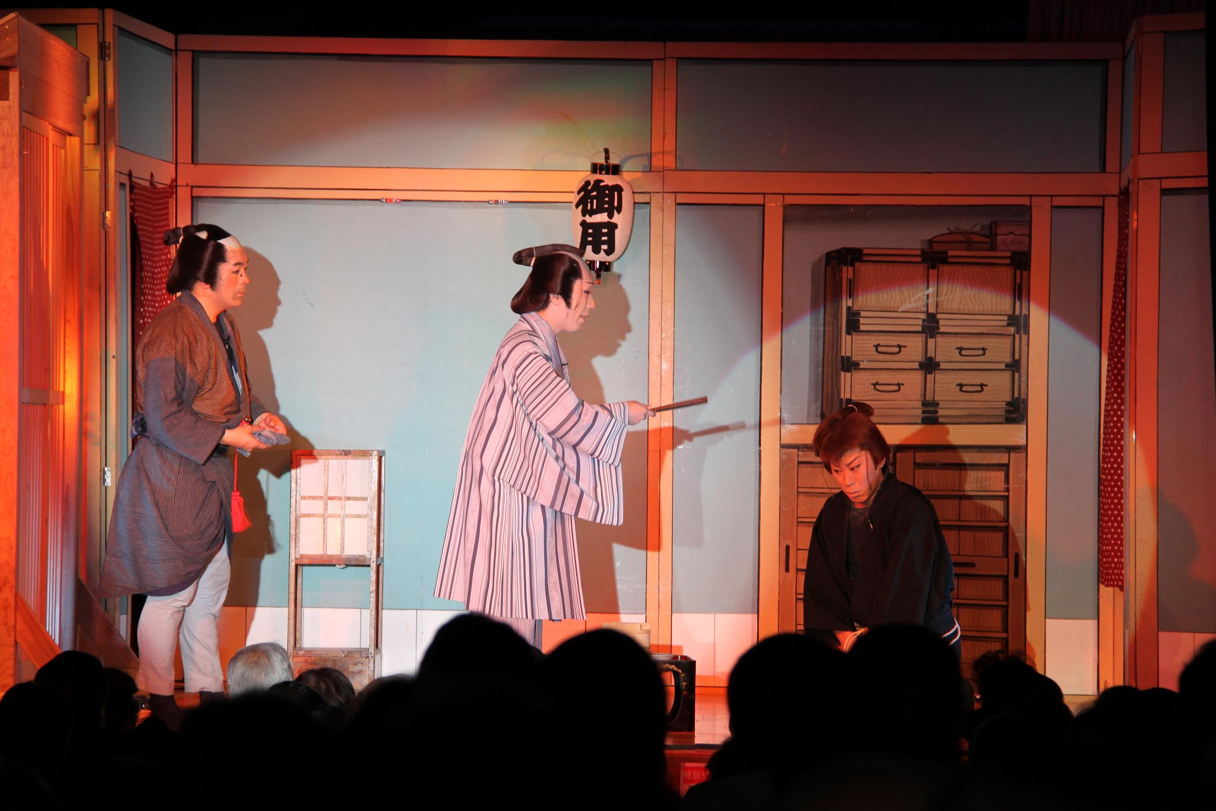 かつて酒蔵であった歴史ある演劇場で、プロによるメイクや稽古後、大衆演劇の公園に出演できます。
