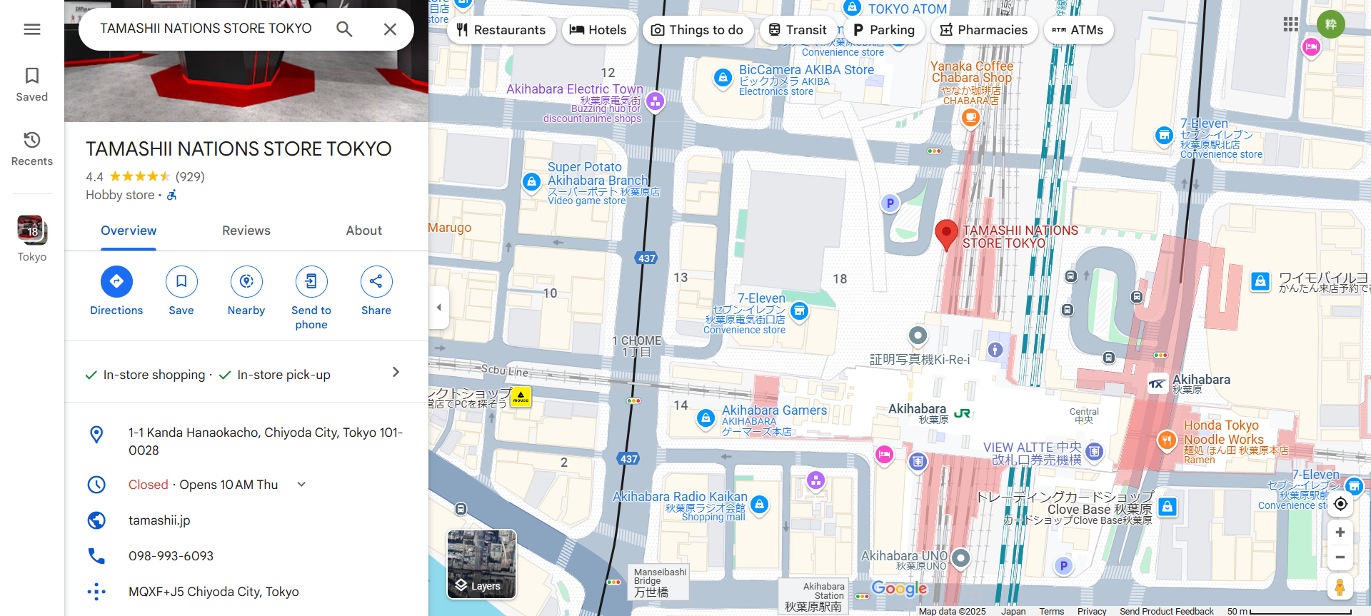 Meeting place :JR Akihabara station, in front of TAMASHII NATIONS STORE TOKYO