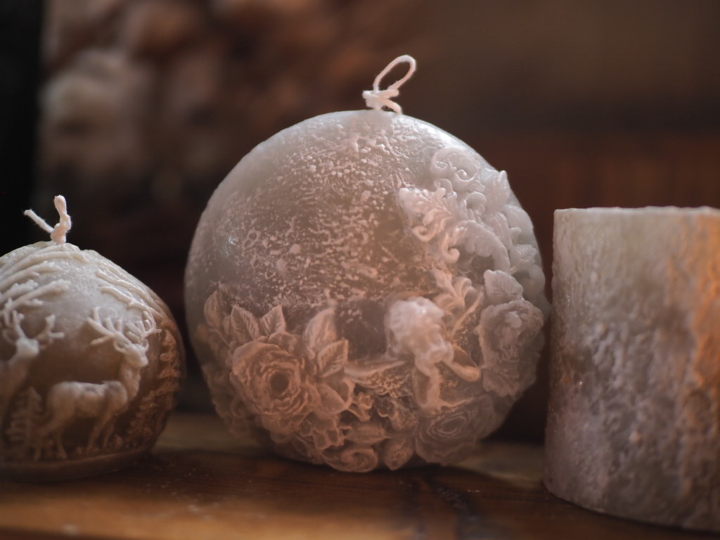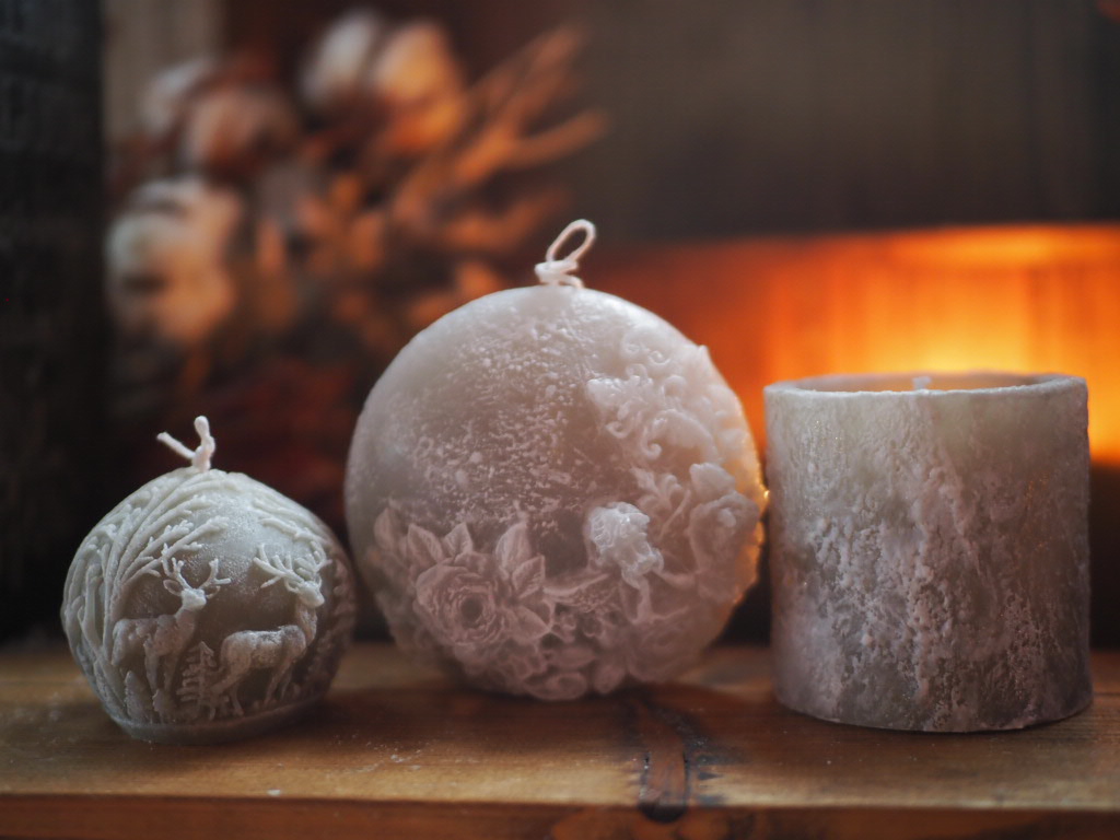 霜をまとったようなピラーキャンドル(好みの香りをブレンド)、幻想的なレリーフキャンドル(好きなパーツを自由に組合せ)、静かな森の鹿モチーフキャンドル。灯して愉しむのはもちろん、冬のインテリアとしても映える特別なレッスンです。下層部の《選択する》をタップするとサンプル画像をご覧頂けます。