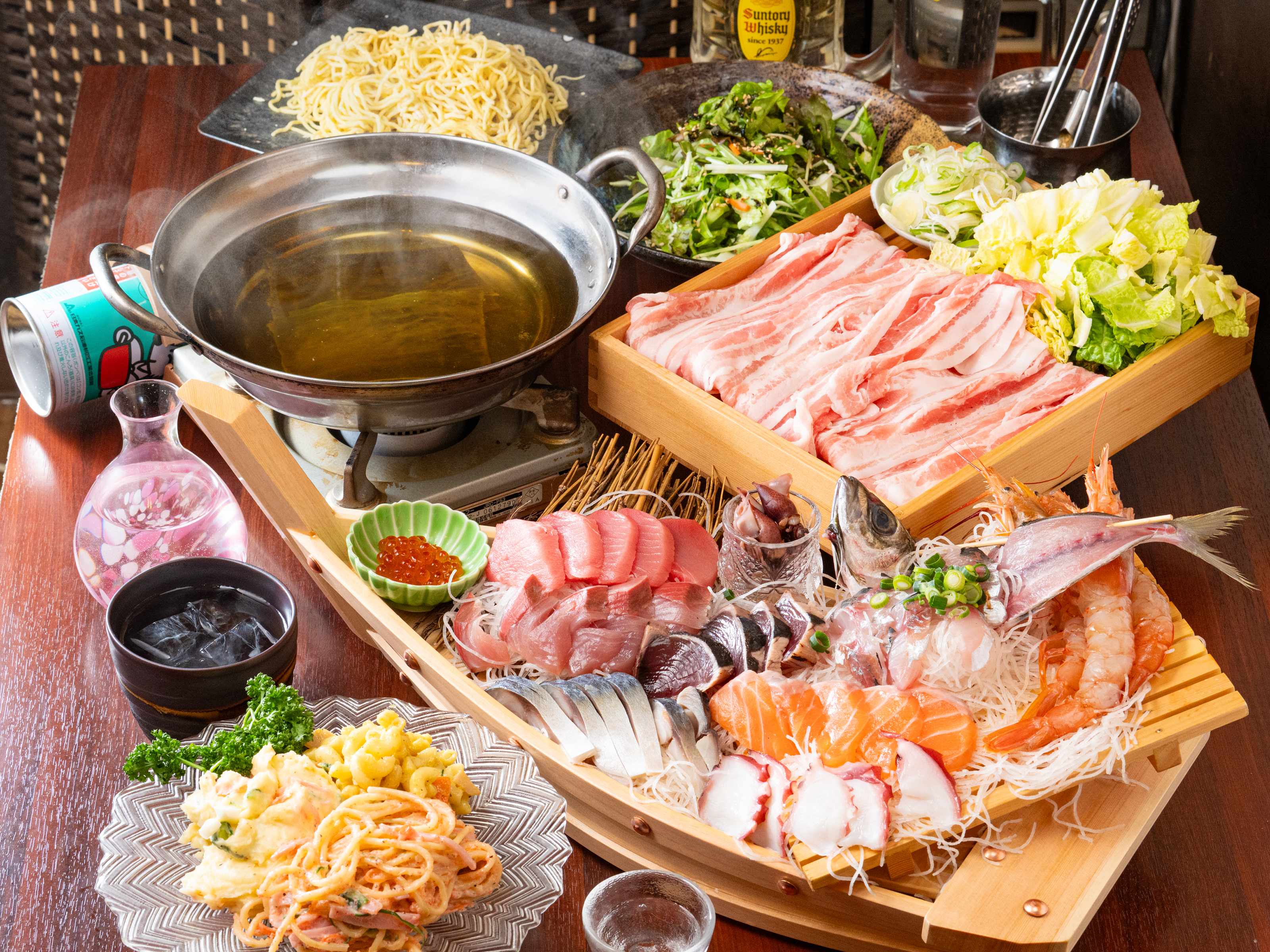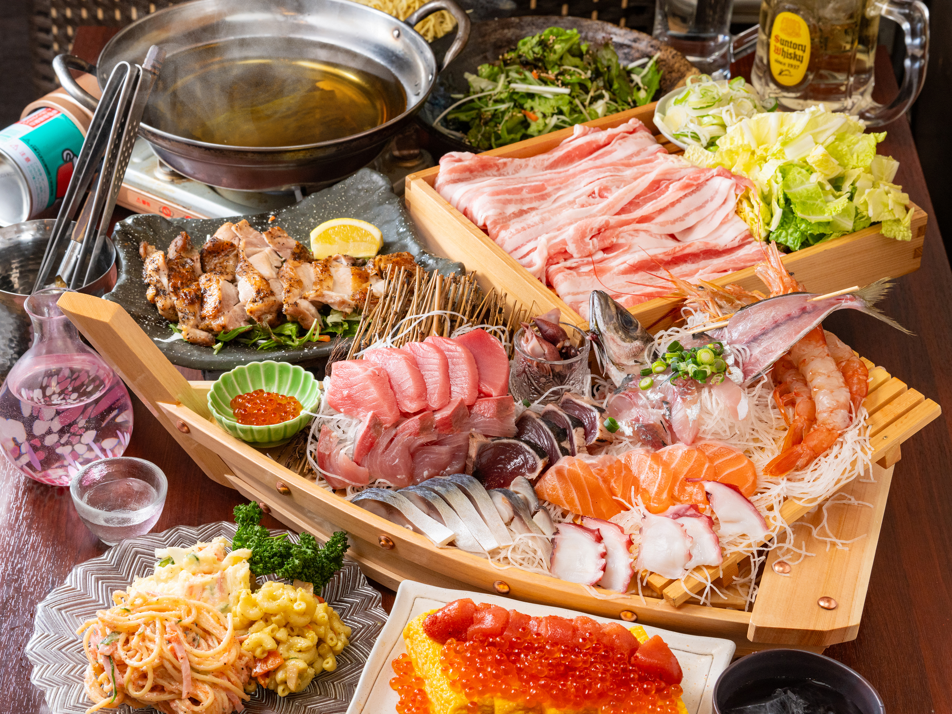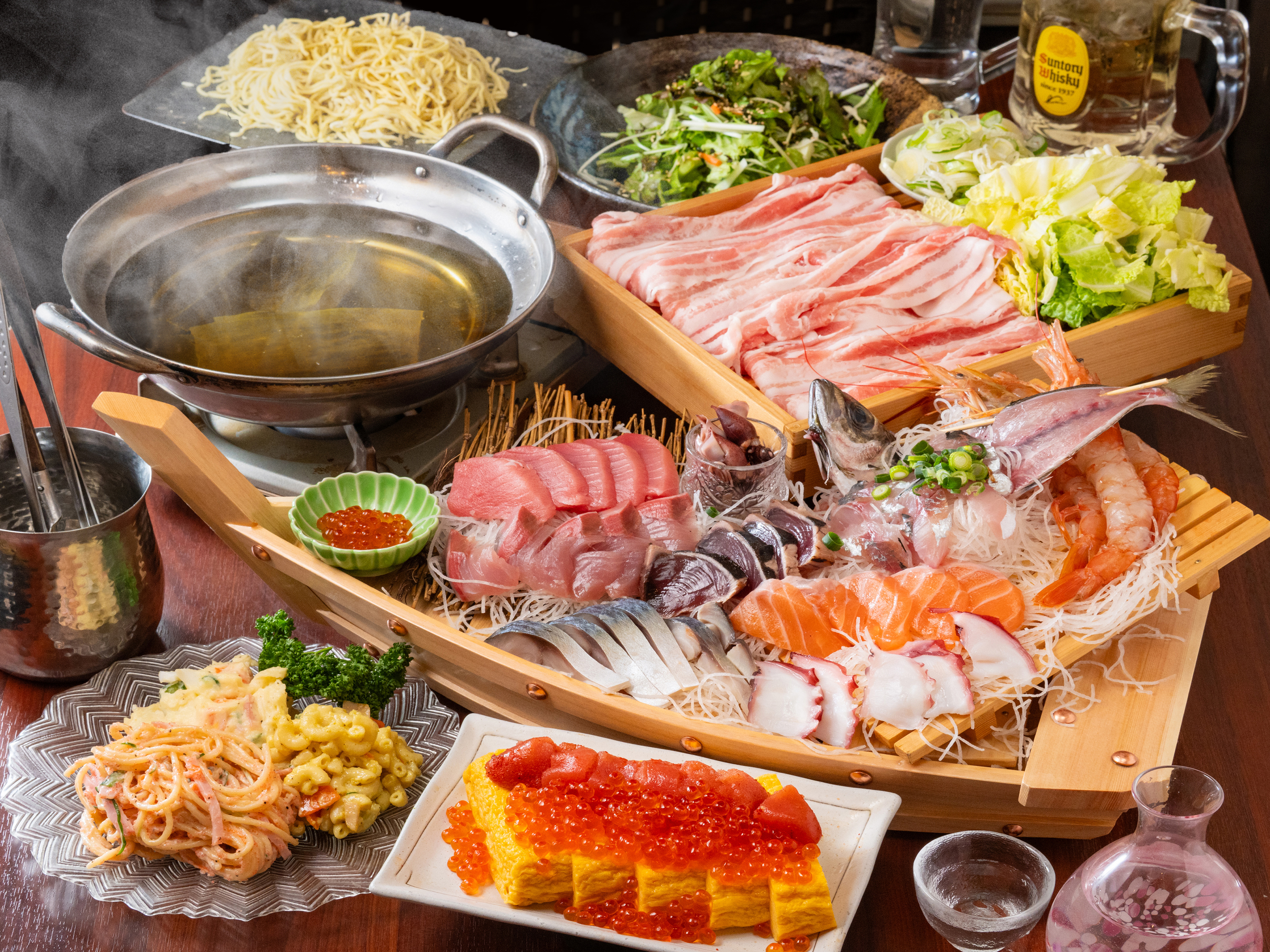 当店人気料理オールスターズの名物満足プラン (2H 飲み放題付き) お料理+ 2H 飲み放題付き 5,000円(税込5,500円) ・和風サラダ ・サラダ3種盛り合わせ ・店主が目利きの刺身5点盛り合わせ ・いくらと明太のせ出汁巻き卵焼き ・当店名物岩中豚しゃぶしゃぶセット ・出汁と旨味たっぷりの中華麺 ・その日のお楽しみ!デザート