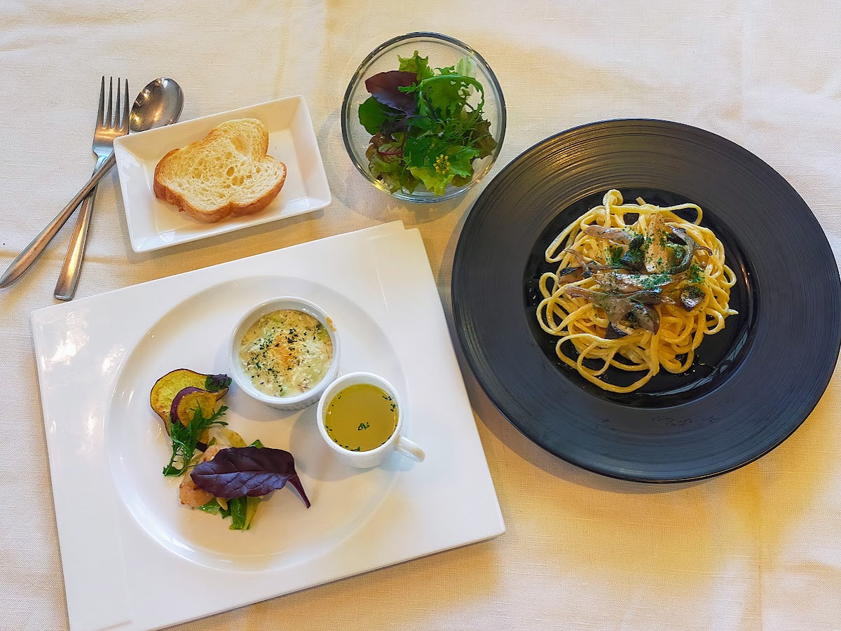 サラダ・ROKAファームの野菜前菜盛り合わせ・お好きなパスタ・飲み物・パン