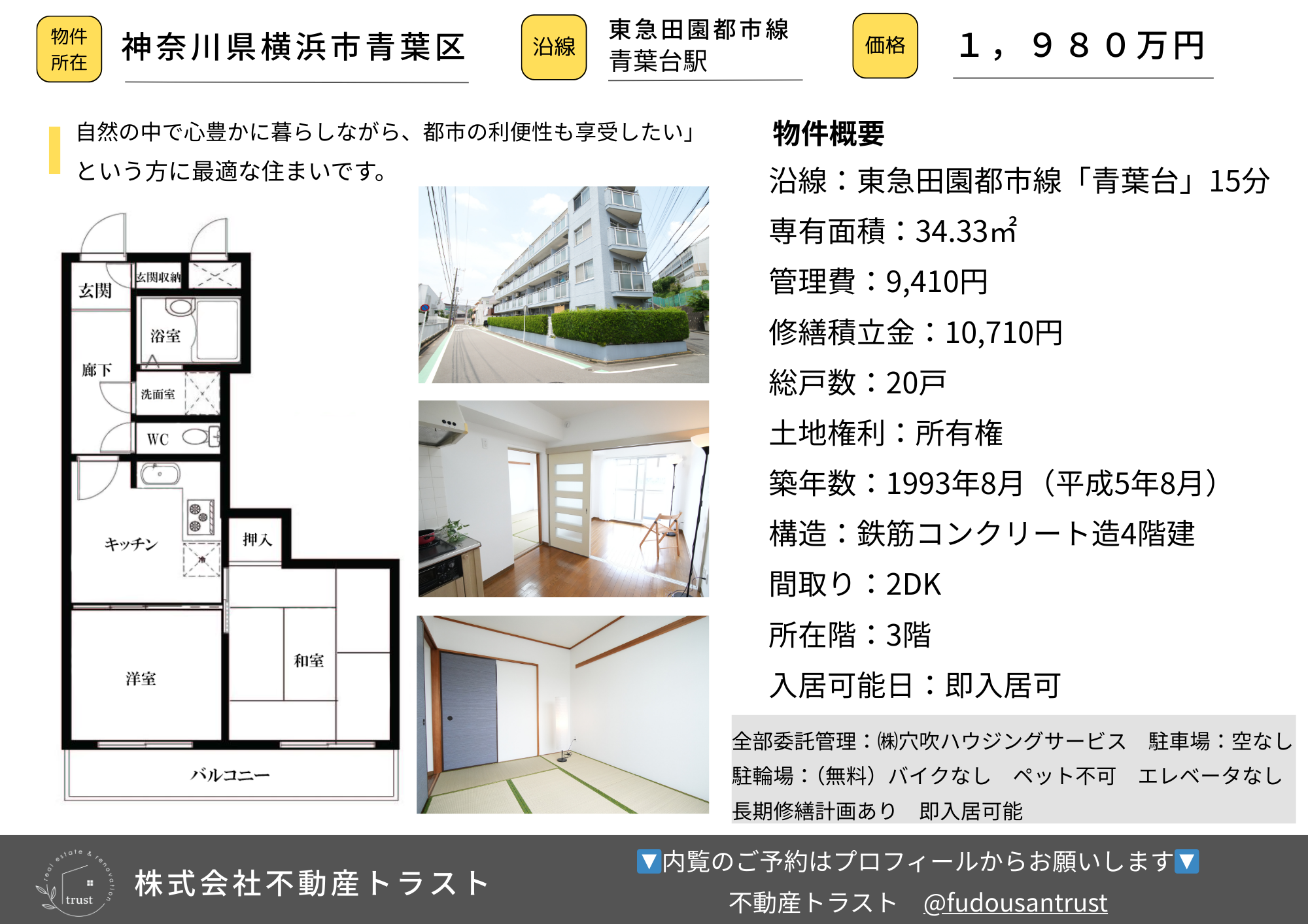 予約当日は現地集合・現地解散となりますので予めご了承ください。セザール青葉台304号室住所:神奈川県横浜市青葉区さつきが丘6-27