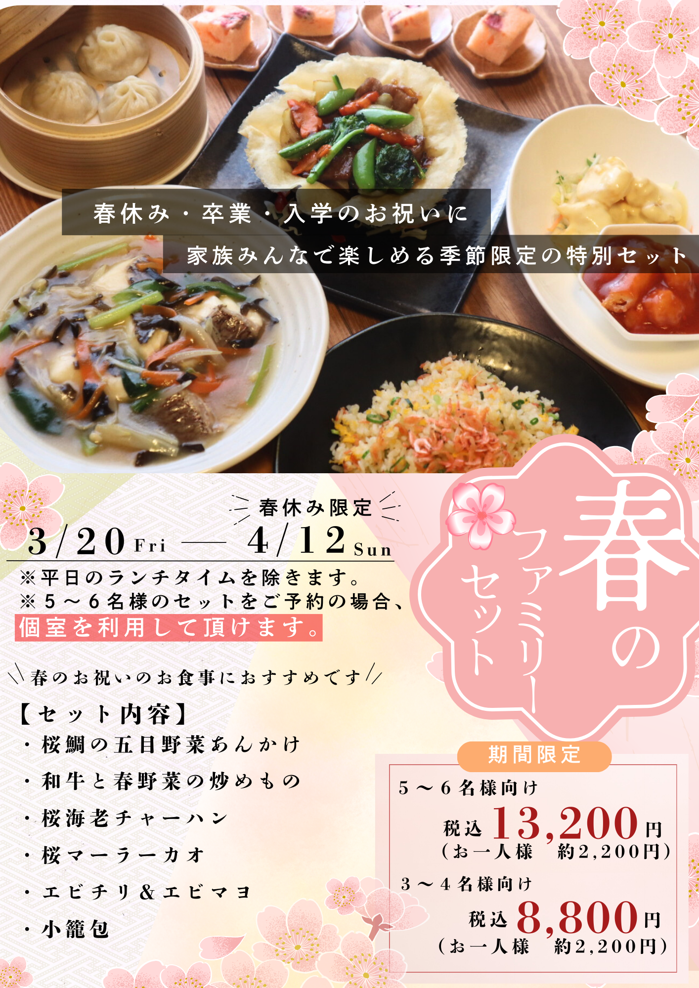 【春休み限定】春のファミリーセット個室プラン ¥13,200(税込)