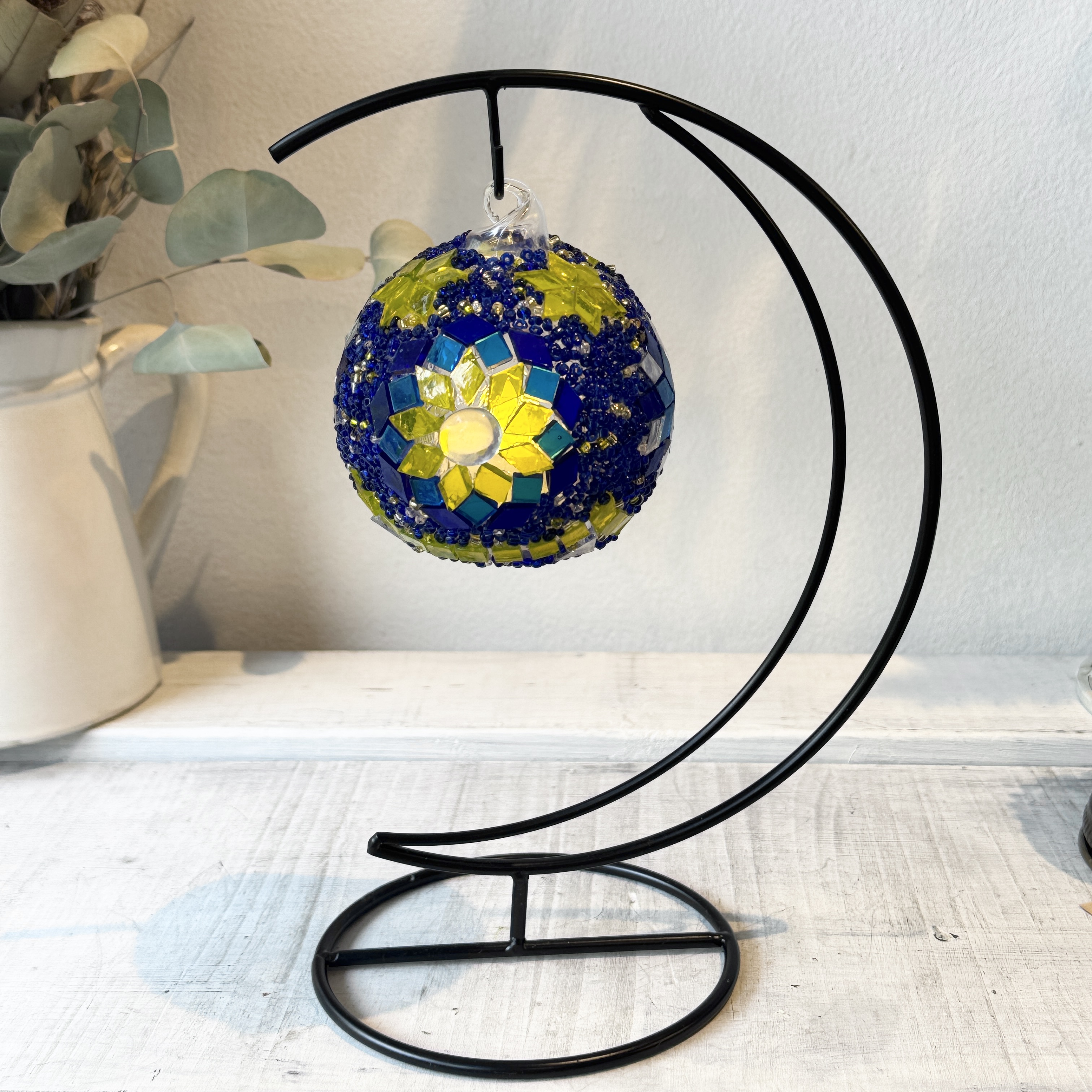 ガラスボールが揺れる、つるしタイプのLEDキャンドルホルダー。