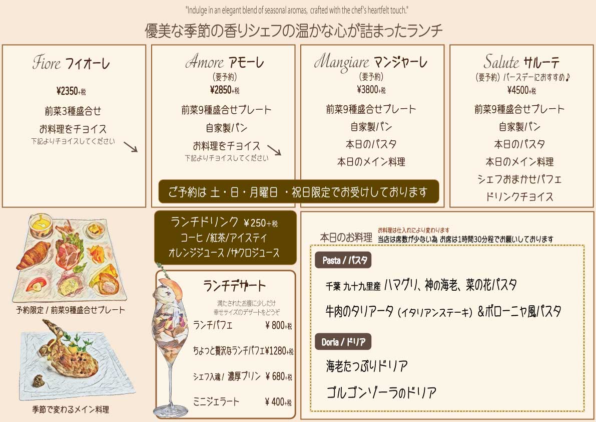 ○店内席数が少ない為ランチのお席は13:15分まででお願い致します。