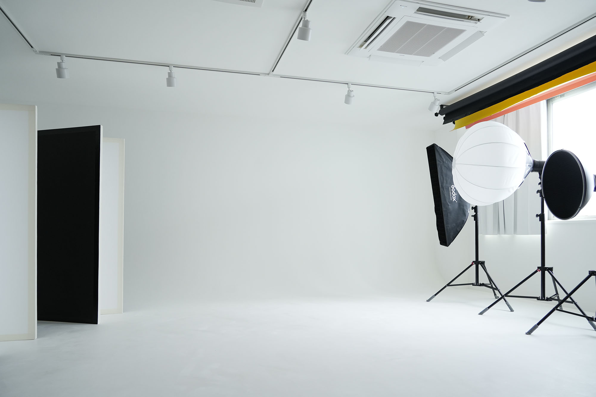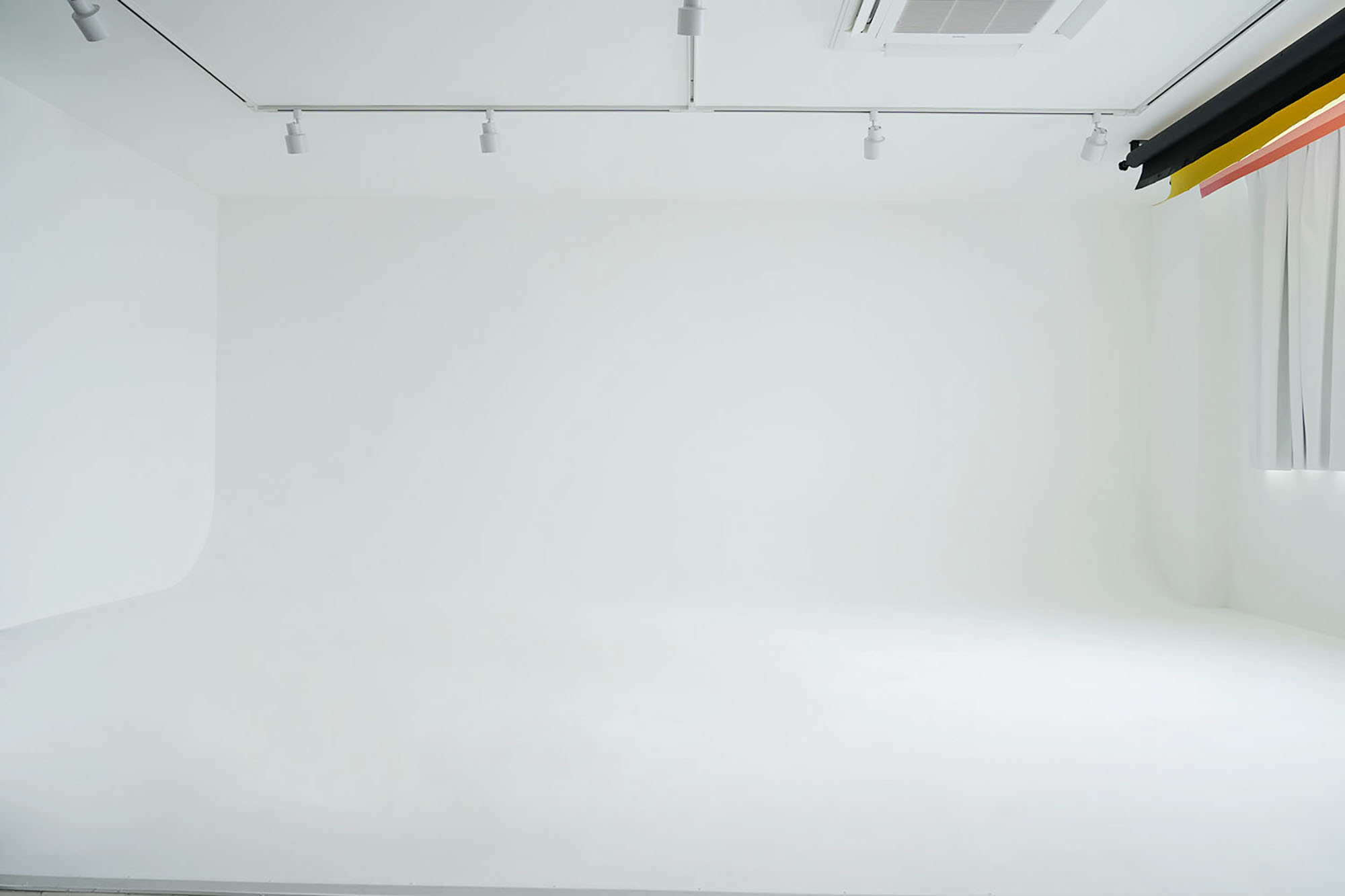 広さ 総面積106㎡ 横幅6m・縦3.5mの1面Rホリゾントをメインにセットスタジオ4個所