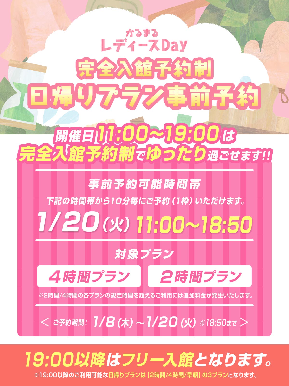 ・19:00以降は「予約無しで」当日入館可能(早朝プラン朝4:00~10:00利用含む)