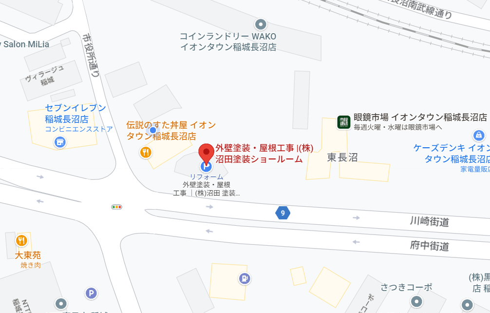 アクセス 【株式会社沼田塗装ショールーム】 〒206-0802 東京都稲城市東長沼1202-5ペアハイム101 (イオンタウン稲城長沼店さんの近くです。) TEL 0120-530-272
