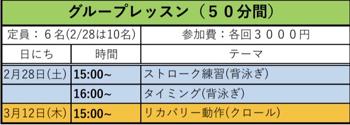 グループレッスン【3月まで追加】 ¥3,000(税込)
