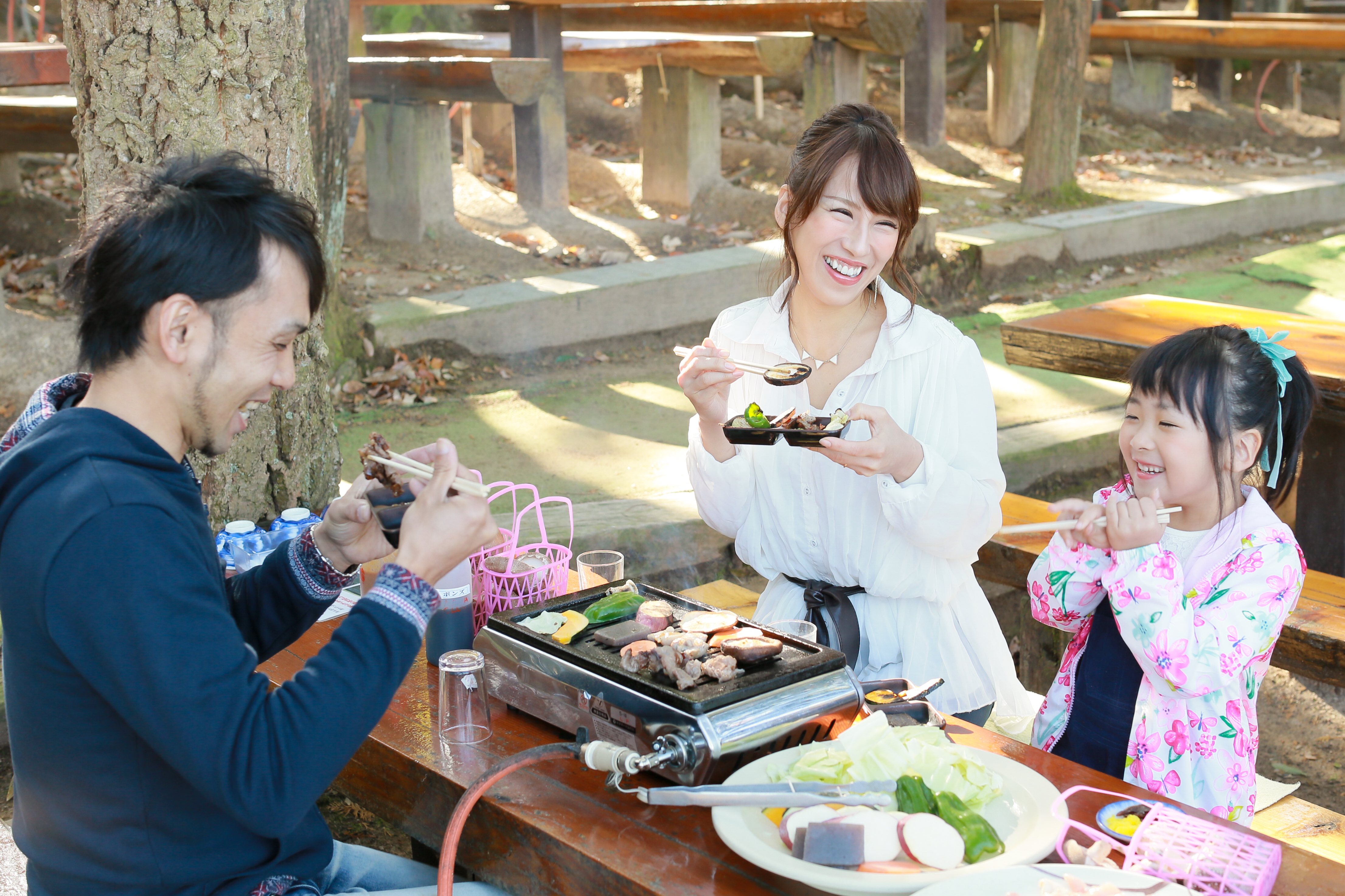 自然の恵みをいっぱい浴びて育った原木栽培のしい茸狩りと、三田産黒毛和牛のバーベキューが楽しめます。