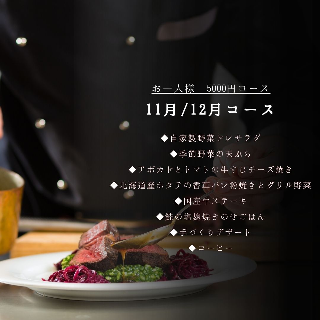 野菜、魚介、肉、すべてを楽しむことができる全8品コース。当店人気の料理をお1人様ずつ丁寧に仕上げ盛付け、ご提供。女性はもちろん、男性のお客様にも満足いただける内容となります。