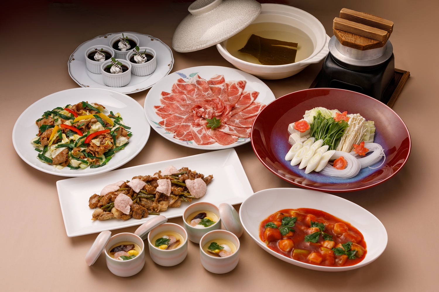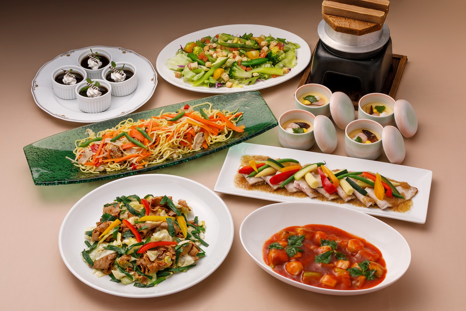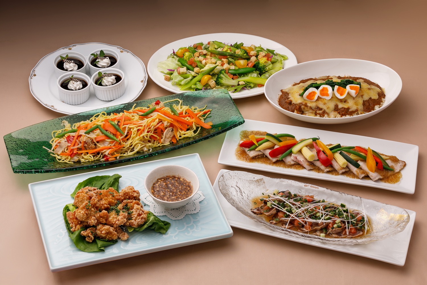 大分の名産のニラを使った大分ご当地グルメ「ニラ豚」と「ローストポーク」を中心とした、お得な皿盛りごはんセットです。(写真は4名様の盛り付け例です)