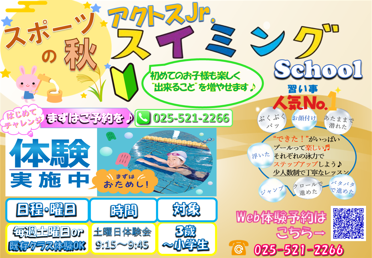 スポーツクラブアクトス上越店スイミングスクールの体験予約フォームです。