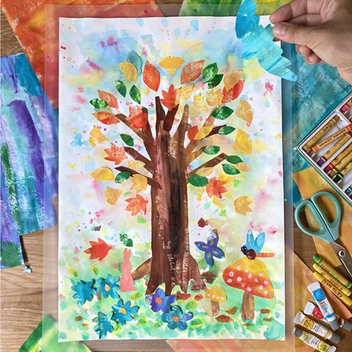 世界は色で満ちている!秋色素材で自由な貼り絵を描こう