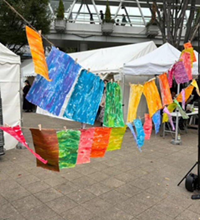 先日開催されたみっけフェスタ2025autumnでは、秋空の下でひと抱えもある大きなサイズの貼り絵を制作しました。